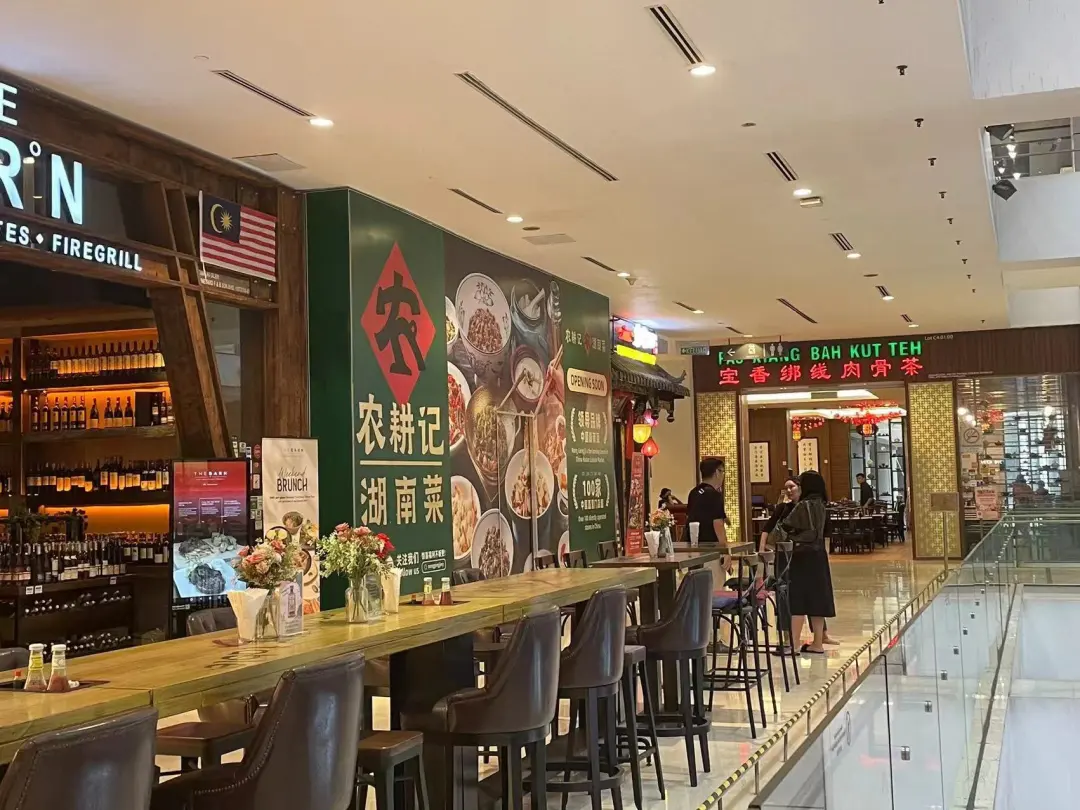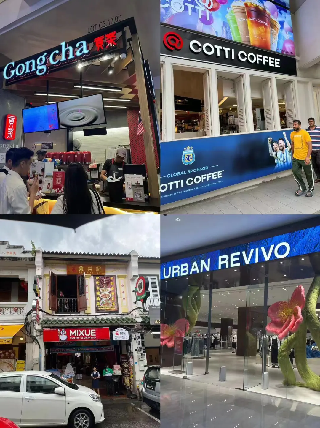 当地最负盛名的商场Pavilion KL,坐落着来自中国的生活百货集合店名创优品;地标性建筑双峰塔附近,永远有人排队等待一杯蜜雪冰城的柠檬水;马六甲鸡场街的转角处,赫然出现COTTI COFFEE(库迪咖啡)的身影;购物商圈武吉免登,农耕记、霸王茶姬、小龙坎、贡茶等中国餐饮品牌更是鳞次栉比。