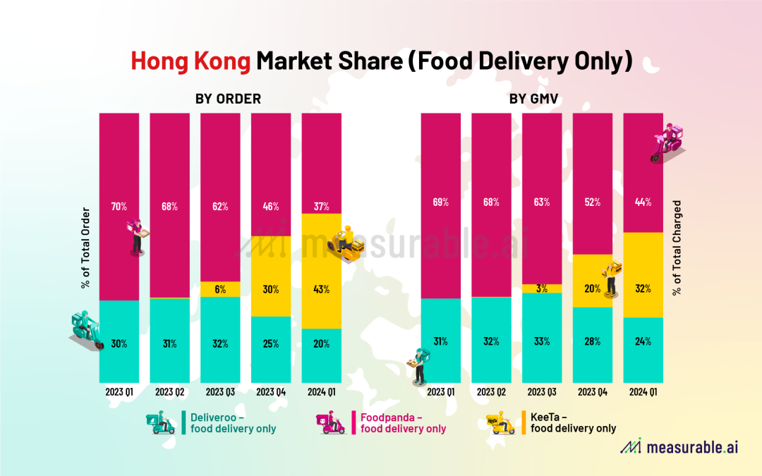 2018年至2021年,香港外卖市场是Foodpanda、UberEats 和 Deliveroo 三足鼎立。UberEats 退出后,市场在随后的两年里变成了 Foodpanda 和 Deliveroo 的双头垄断。2023年5月, KeeTa 进入市场,香港外卖市场再次成为三头垄断的战场。