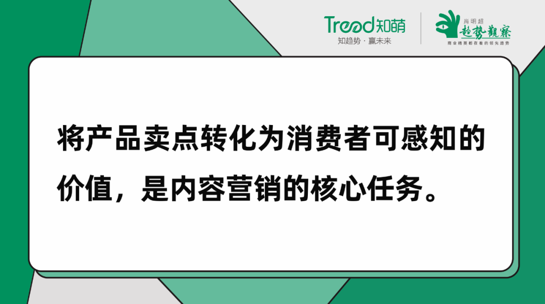 在如今的消费环境中,将产品卖点转化为消费者可感知的价值,是内容营销的核心任务。面对消费趋势的多样化和消费者需求的日益细化,内容营销需采取更为精准和创新的策略。品牌的内容营销真正要做的是什么?我们总结了三个维度: