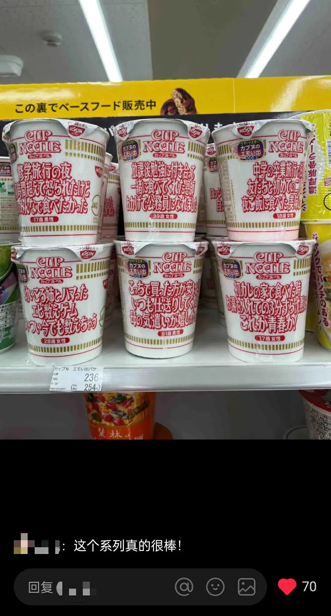 有网友推测这应该是日清杯面特别推出的粉丝互动企划,消费者可以通过渠道向日清留言,分享自己与日清杯面相关的故事。日清会在留言中选出100个特别的故事作为产品新包装上市。