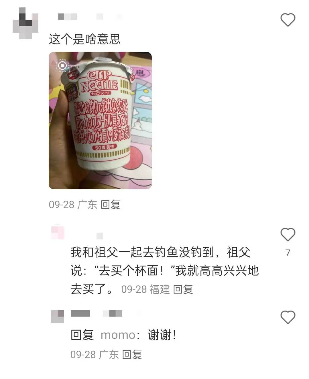 这是一位50岁男性的留言:我和祖父一起去钓鱼没有钓到,祖父说:“去买个杯面吧!”我就高高兴兴地去买了。