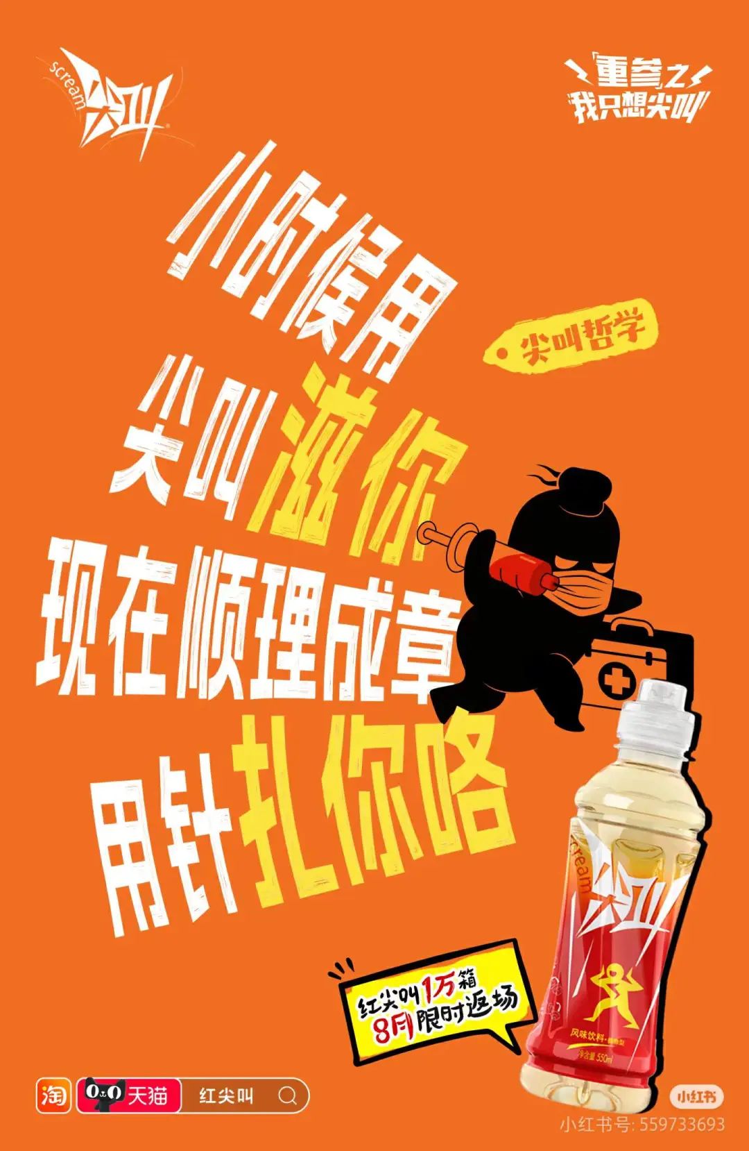 此次,尖叫官方为庆祝红尖叫的20周年回归,制作了一只洗脑广告短片。值得一提的是,这支短片里所涉及的故事均来自尖叫粉丝投稿,特别的粉丝共创模式和短片里循环播放的魔性广告词令人耳目一新。
