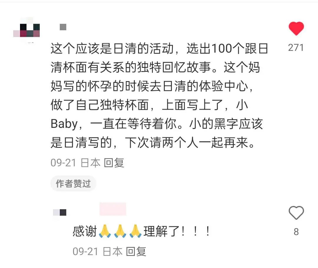 评论区中,一位懂日语的网友分享了这段话的翻译,原来它出自一位38岁的母亲之手。她讲述了自己在怀孕期间,前往日清杯面博物馆的一次特别体验。