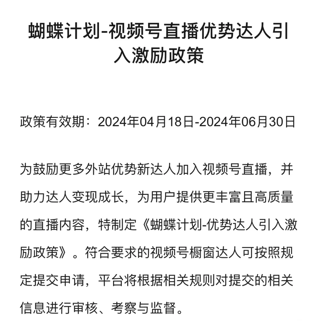 为此,微信在今年4月开始实施“蝴蝶计划”,将达人由低到高分为5个等级,对于完成任务的达人最高给予150万元电商卡用于视频和直播间推流,以吸引更多商家、达人和品牌入驻并开启带货直播。