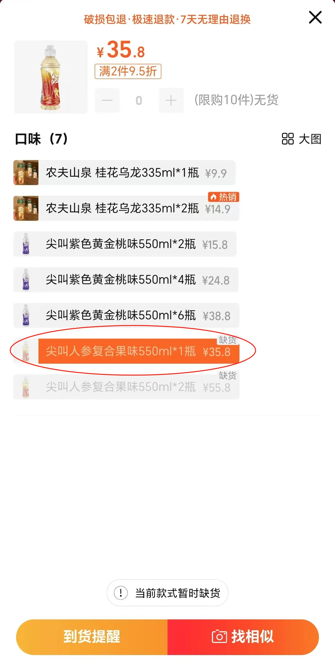 今年8月,已经停产的红瓶尖叫回归,并在电商平台限量发售。最终,1万箱红瓶尖叫在3天时间内便售罄,并连续5天排名天猫“功能饮料新品榜”Top3[2]。甚至由于太抢手,还有淘宝商家将红瓶尖叫抬到每瓶35.8元的价格转售,并依然卖断货。