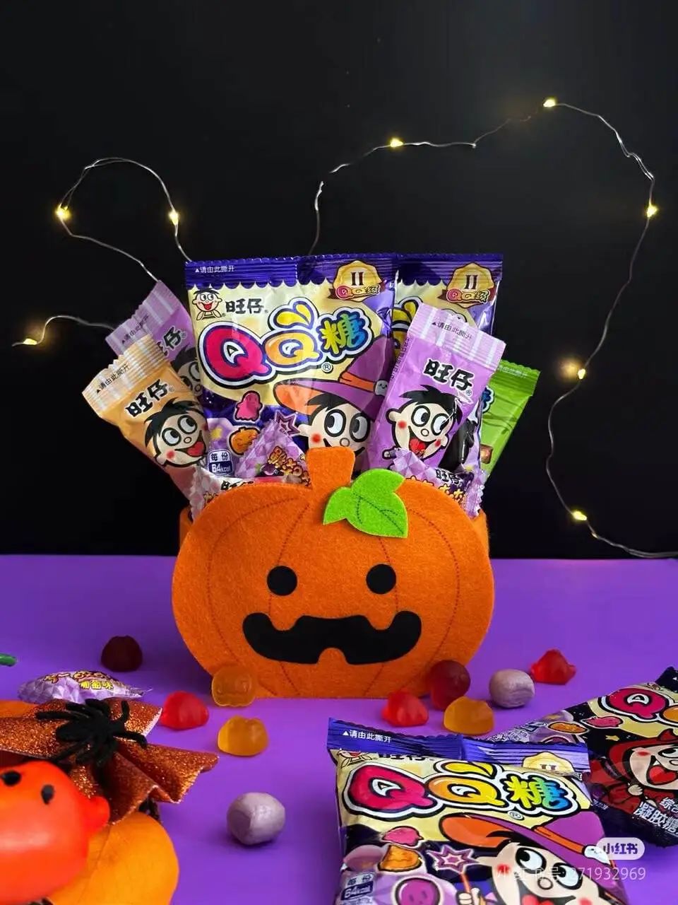 将QQ糖放进南瓜口袋里,与旺仔一起踏上万圣夜的魔法之旅吧!??