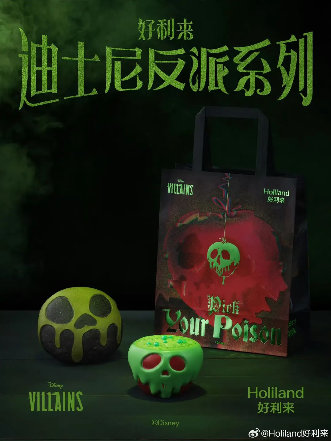 好利来这次玩了波大的,把万圣节的恐怖气氛和迪士尼童话里的皇后角色结合到一起,推出了“反派”系列。想象一下,咬一口毒苹果蛋糕,是不是感觉自己也成了童话里的大反派?
