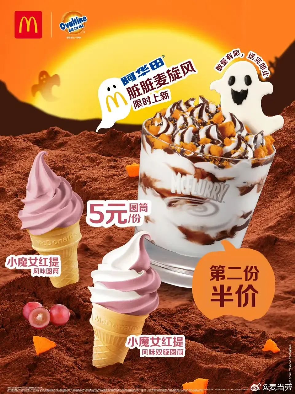 最近,麦当劳为迎合万圣节的节前氛围,上新了阿华田脏脏麦旋风。