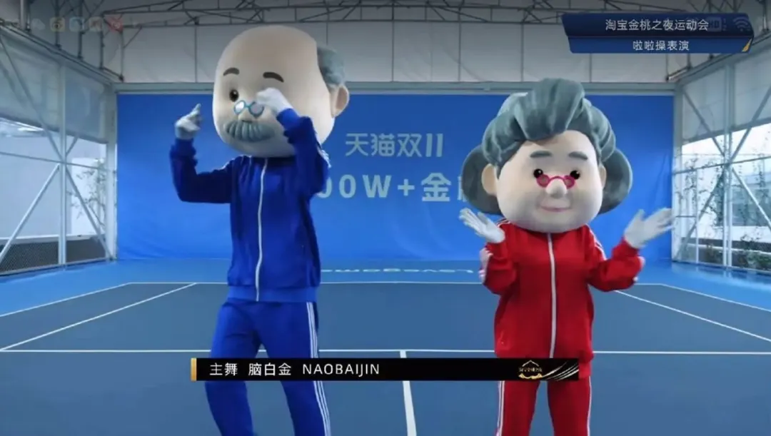 接下来请欣赏脑白金爷奶带来的啦啦操表演:
