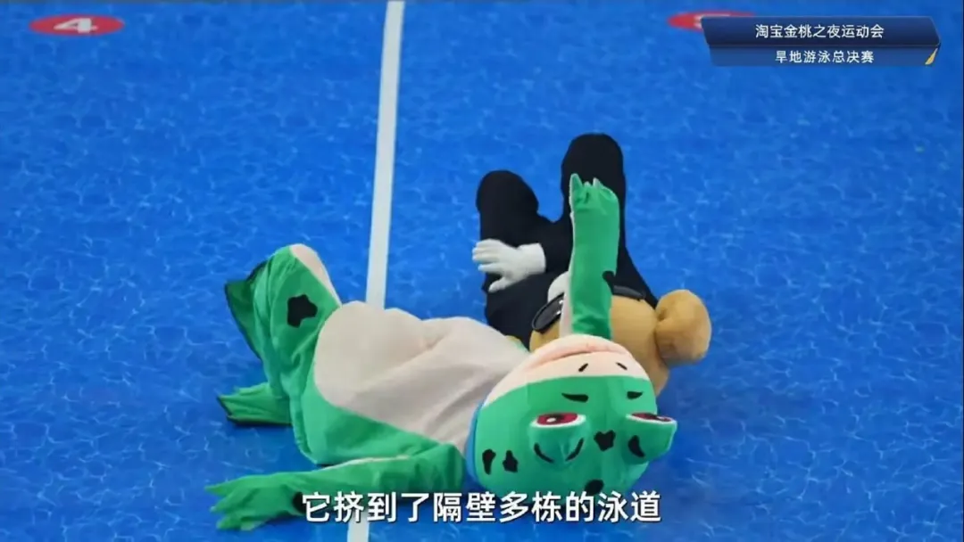 青蛙初始配速非常快,但是挤占了多栋的泳道,完全迷失方向,被多栋成功反超!!