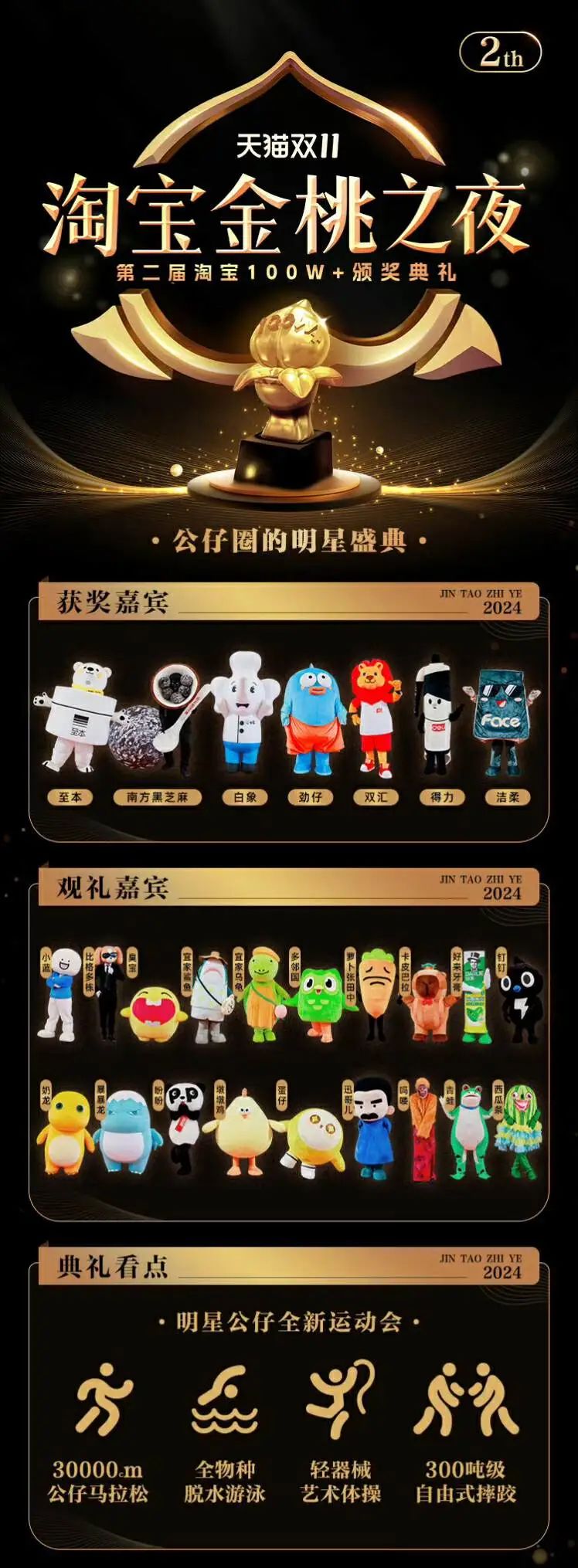 近日,淘宝官方联合各品牌公仔举办第二届『金桃之夜』!