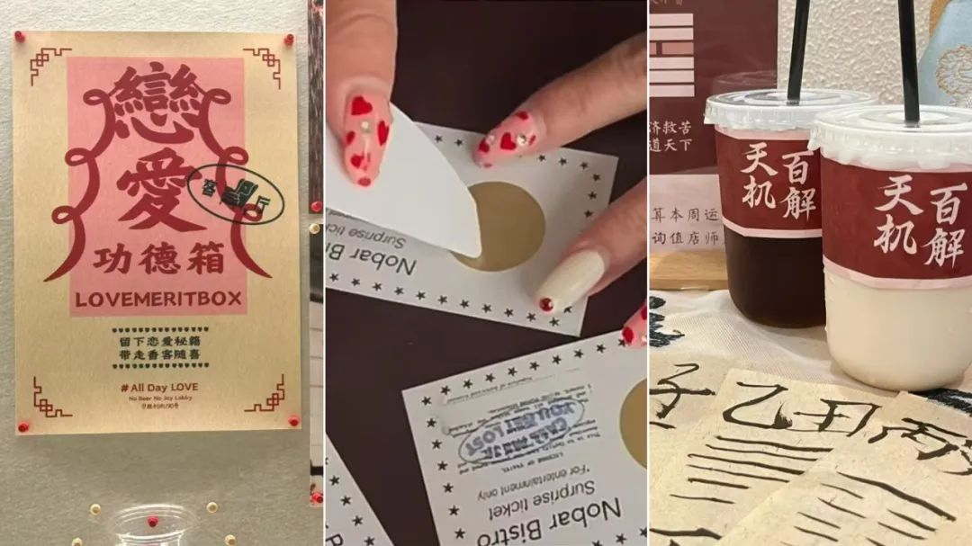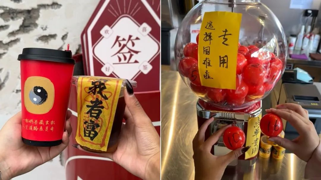 热饮纸杯上则有印着八卦图案的标签,顾客揭开标签,可看运势,也可以找店员解析。