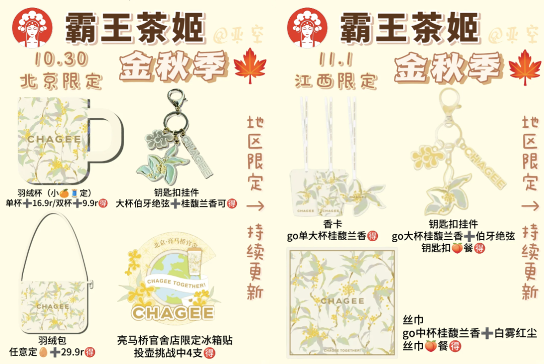东西咋就这么多?主要因为霸王茶姬的周边常常是“地区限定”。