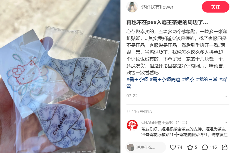 如今,霸王茶姬的周边,也有自己的平替了。没有谁比钻研平替之道的品牌更懂被仿冒的含金量,假货固然是个困扰,却也是印证着热度和稀缺性的privilege。