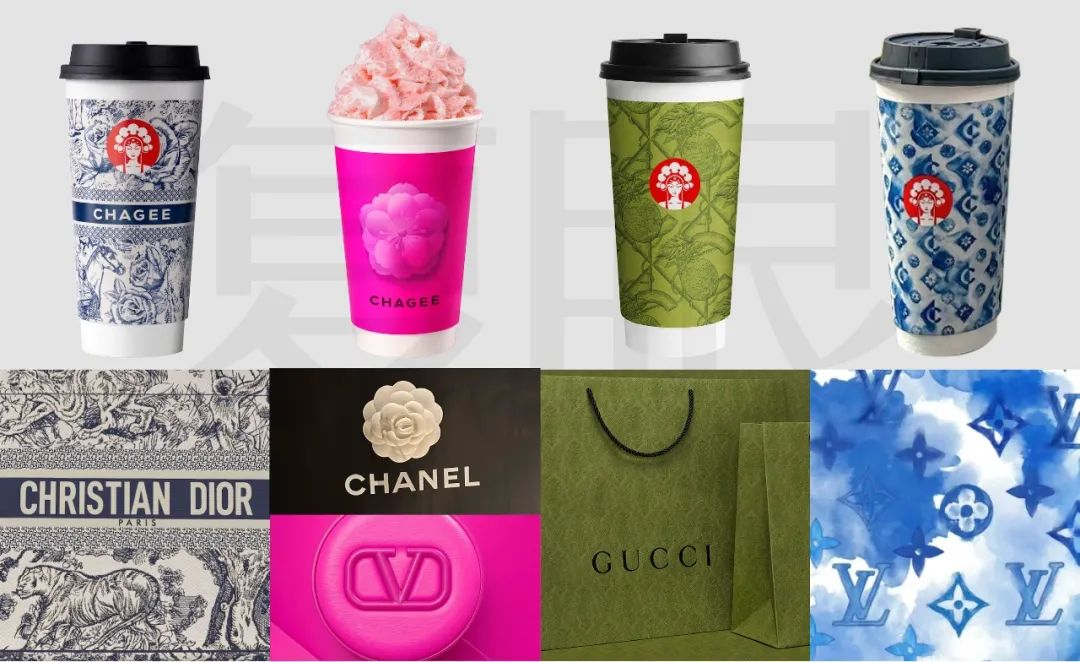 几次三番和迪奥、LV、华伦天奴等奢侈品牌撞设计是跳出刻板认知中“国风”形象的一大步,这让霸王茶姬陷入抄袭争议,却无疑是个改头换面的捷径。在那些纹样和“高级”之间划上等号,已由奢侈品牌代劳,霸王茶姬无需费功夫“教育”,只需要出现,就是在消费者潜意识中种下高大上的种子。
