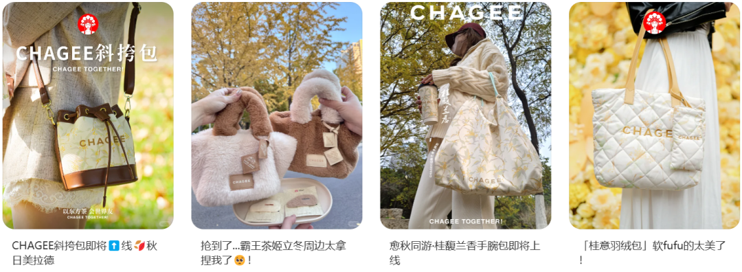 有人去奶茶店买包,有保温层的外卖袋是现成的饭盒包,品牌周边更是已经发展到将托特包、水桶包、羽绒包等一众热门款式全部网罗;
