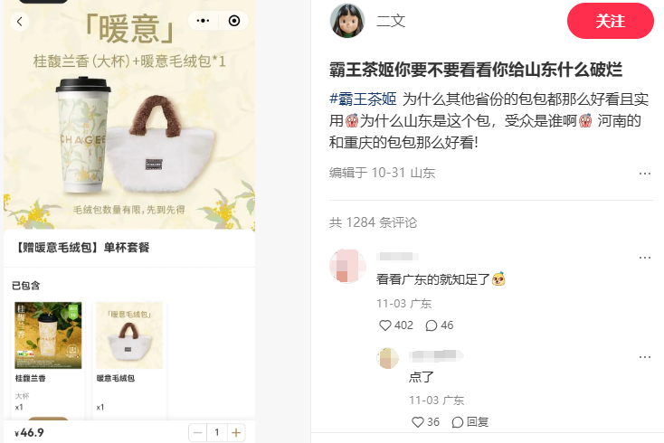 消费者会比较各省的周边哪个更好看,甚至控诉霸王茶姬对自己的所在地不够好,眼馋其他省周边也是常有的事;霸王茶姬员工一样在比较,各区域像一个班里的同学,活动和周边就是一次次月考,谁要是考了第一,笔记本马上被全班哄抢。
