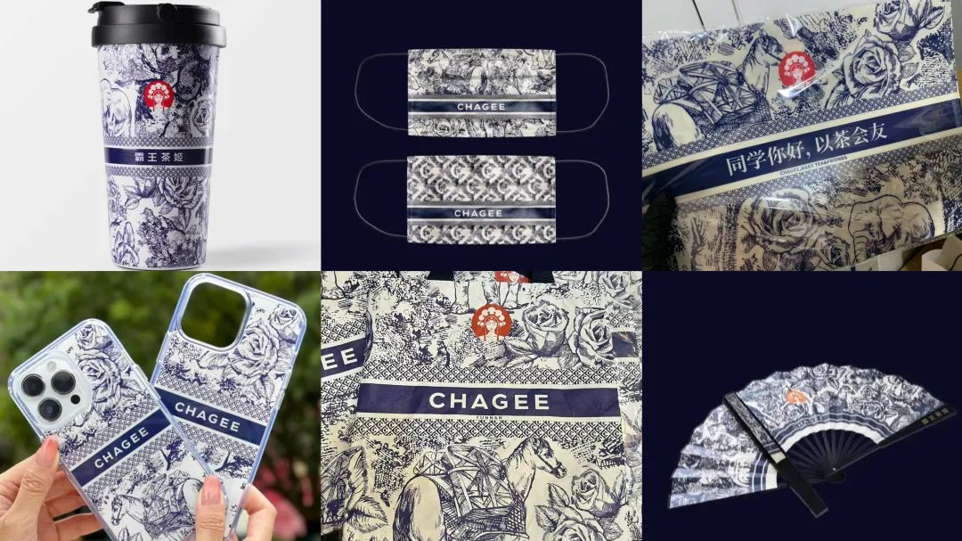 比如经典款白底蓝花包材,实际上画的是茶马古道,有大象、玫瑰、茶树和马,而迪奥托特包上画的是老虎、狮子和猴子;又比如去年推出的“山野小蓝杯”被质疑抄袭LV水墨外套,而霸王茶姬的官方描述为“致敬唐风向野而生,取形于大唐琵琶纹,取意于西南扎染元素”。
