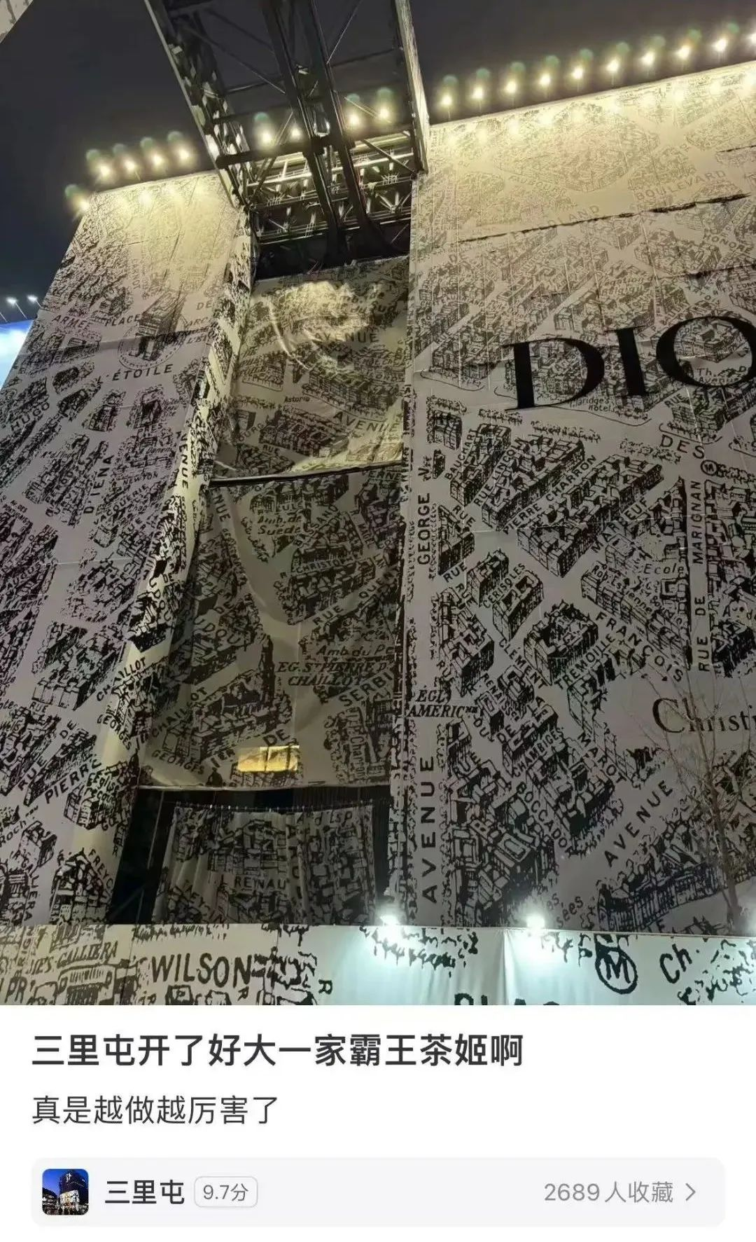 迪奥在三里屯开旗舰店时一度有网友调侃“霸王茶姬都开这么大店了”,难保将来霸王茶姬就不会真的开个这么大店。