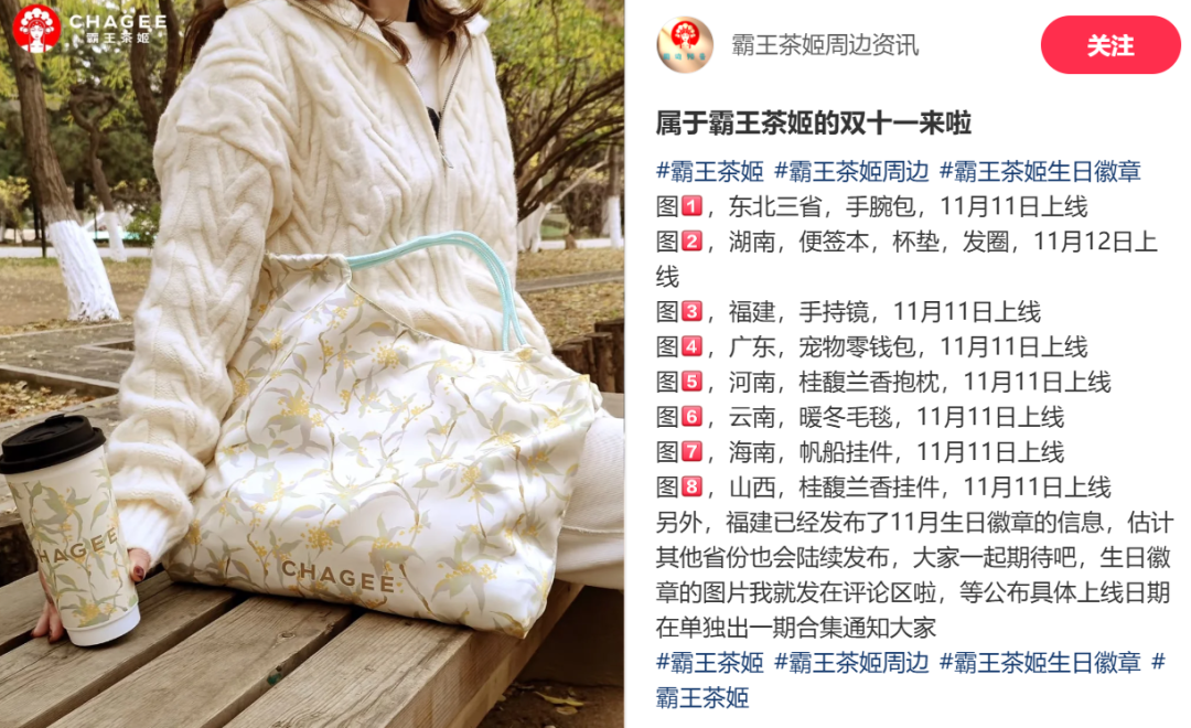消费者喜好、流行趋势、定价,都是影响周边人气的因素,但别忘了,区域各自为战的模式天然就让霸王茶姬的周边显得更独特、更稀缺,也就更吊胃口。