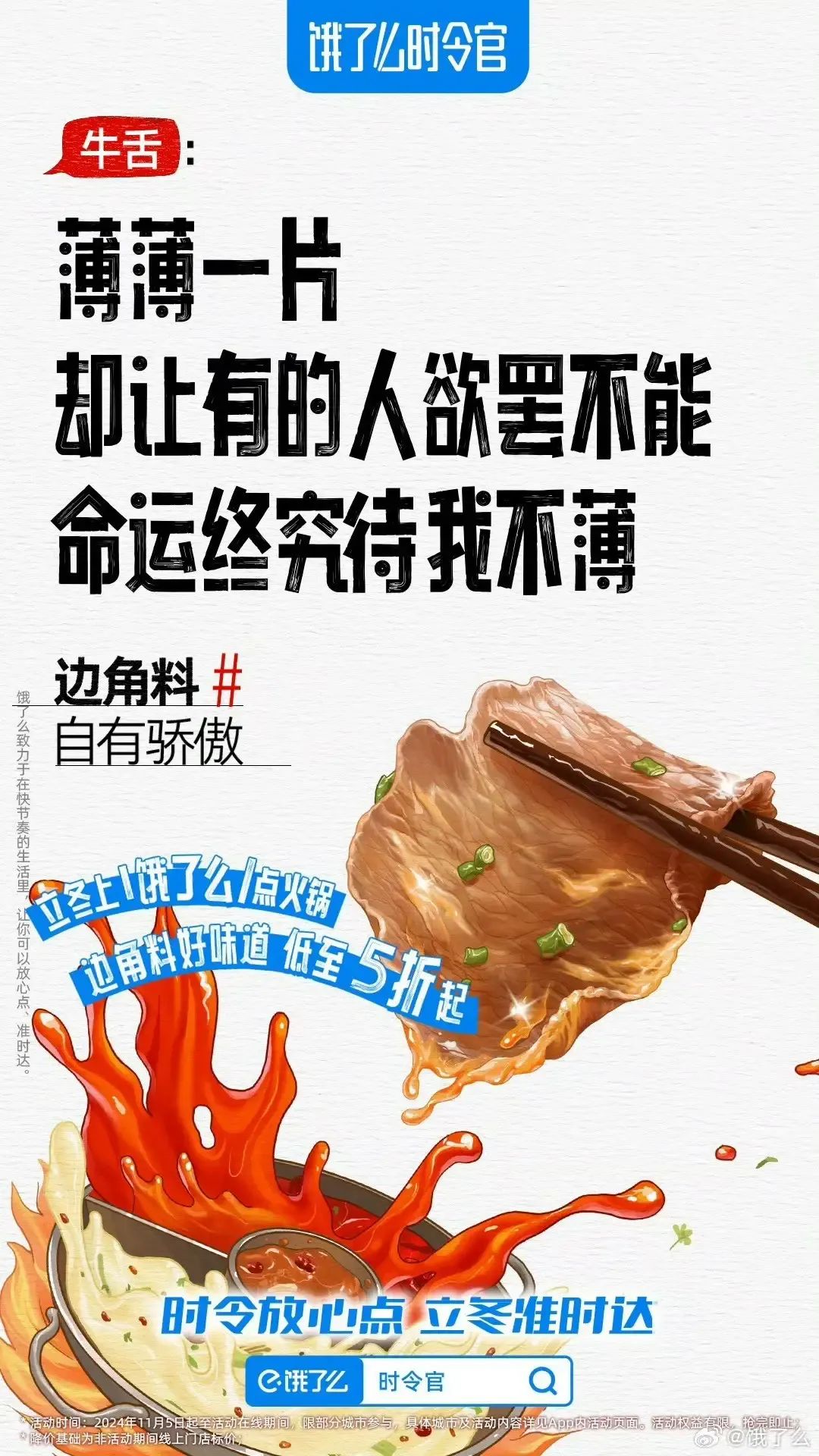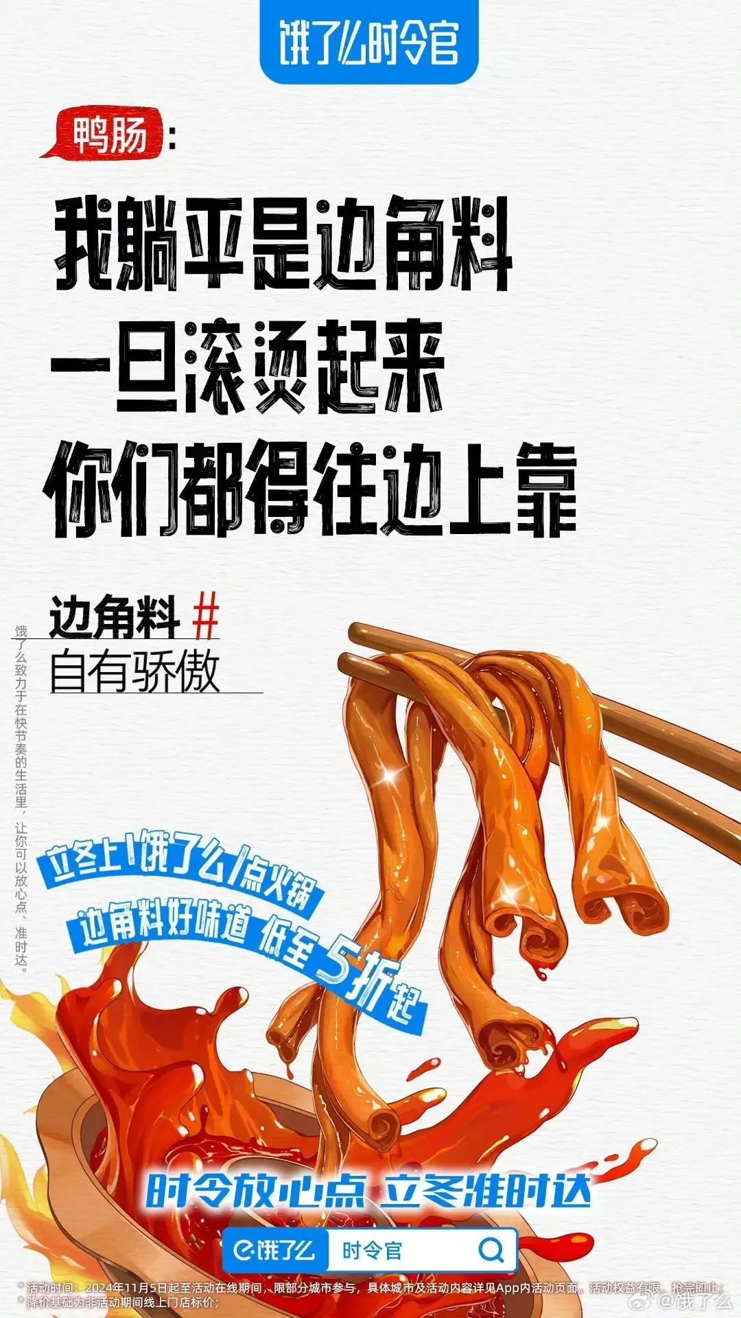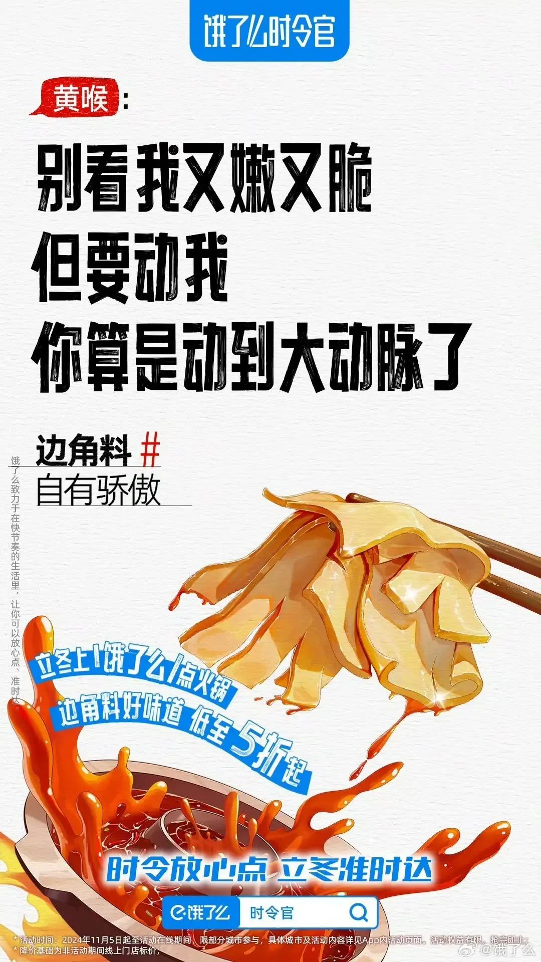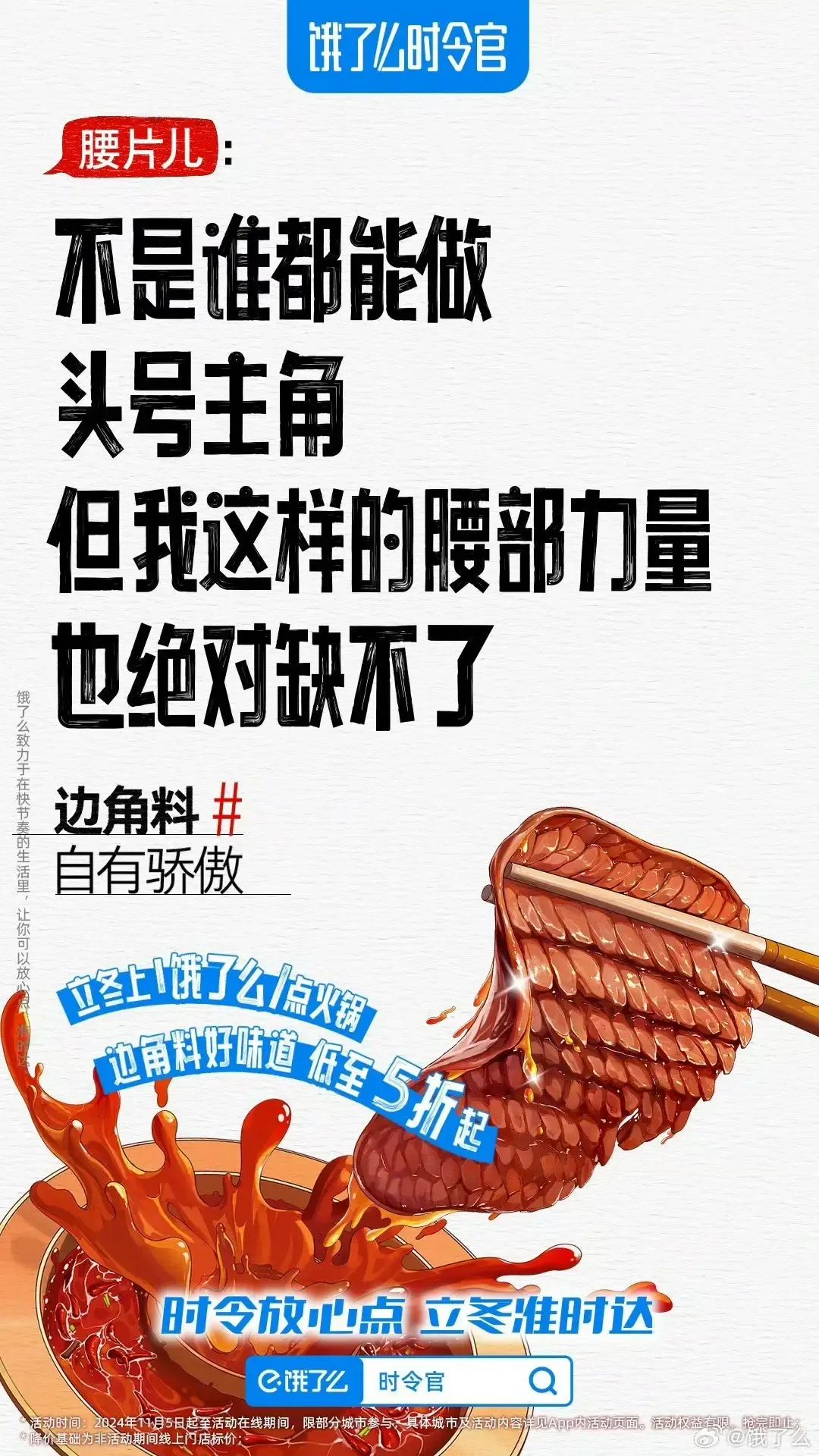 饿了么主打的就是一个一天25小时在线,一周八天高强度冲浪,实时追热点,从不玩“过期梗”。