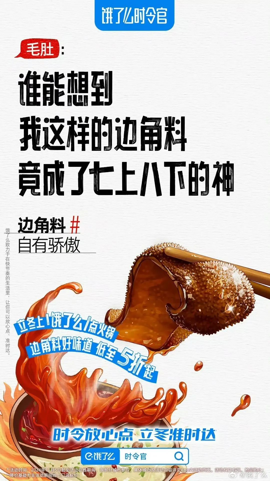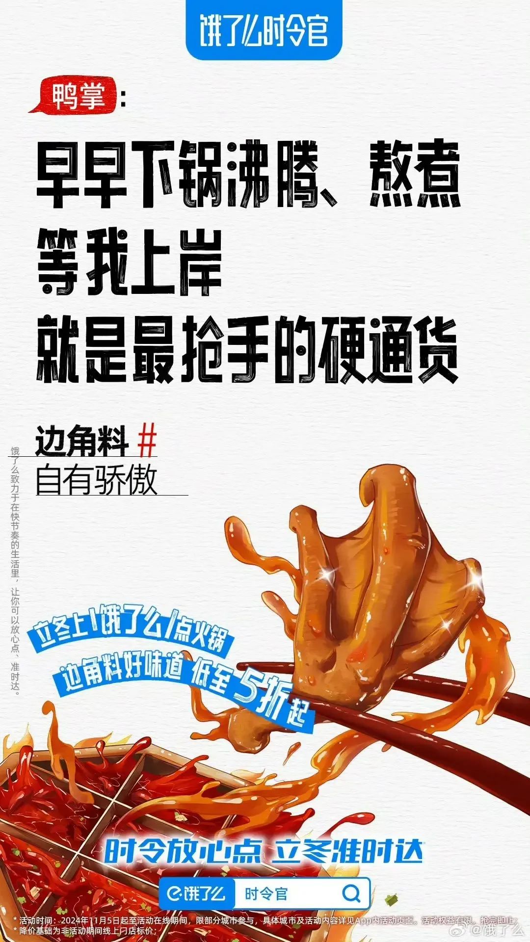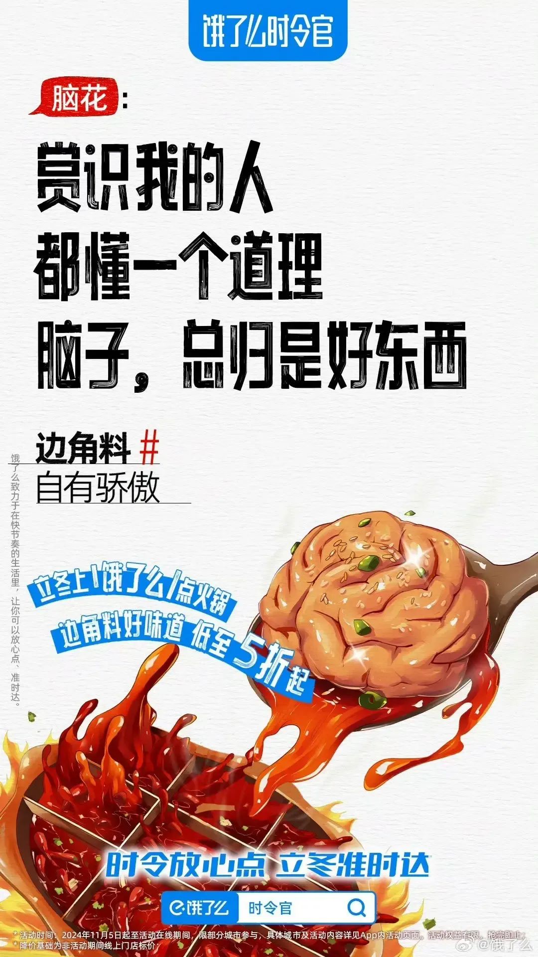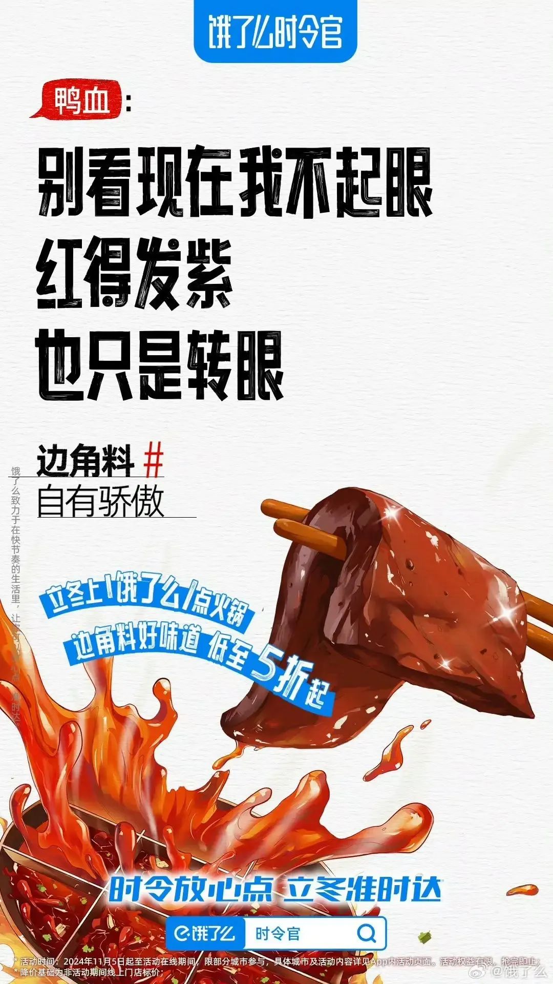 饿了么主打的就是一个一天25小时在线,一周八天高强度冲浪,实时追热点,从不玩“过期梗”。