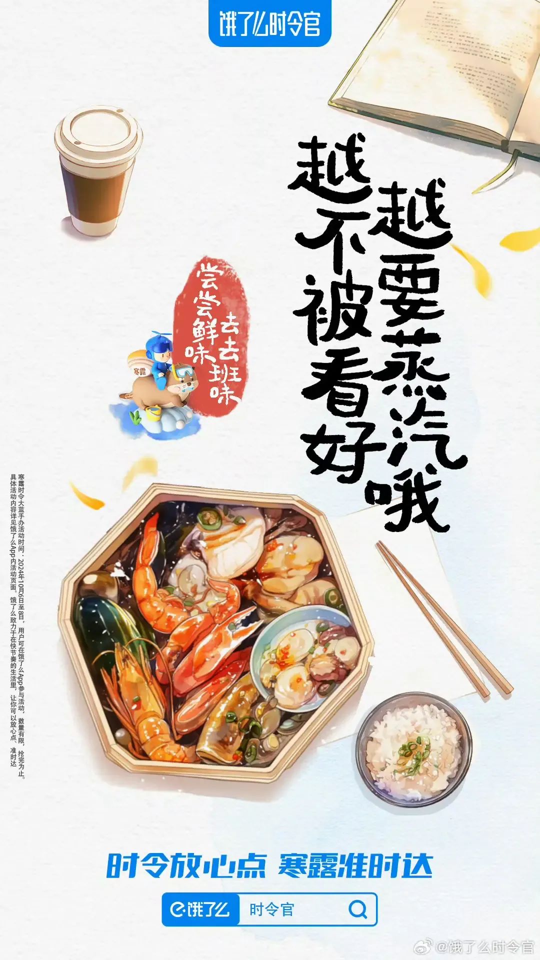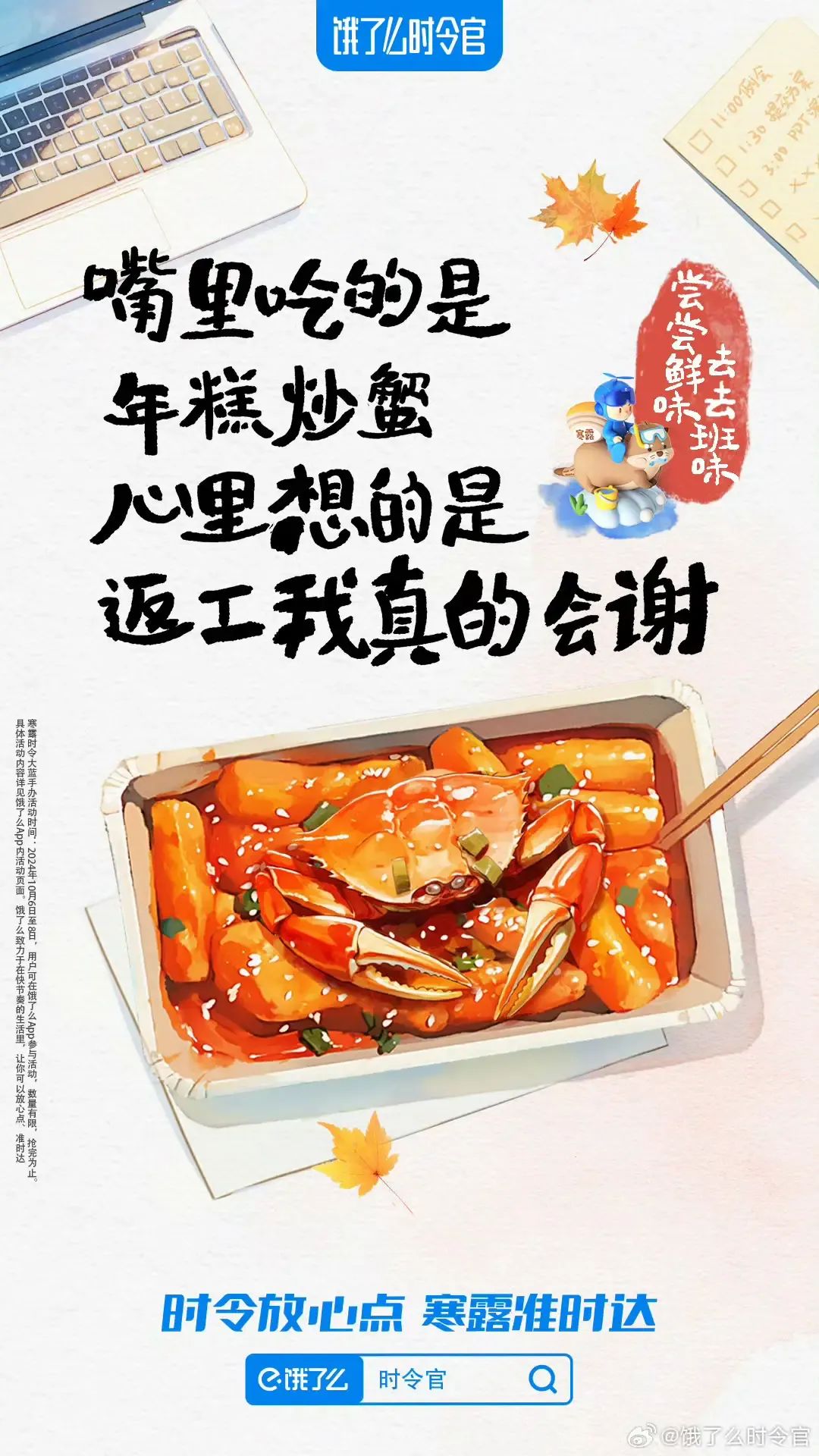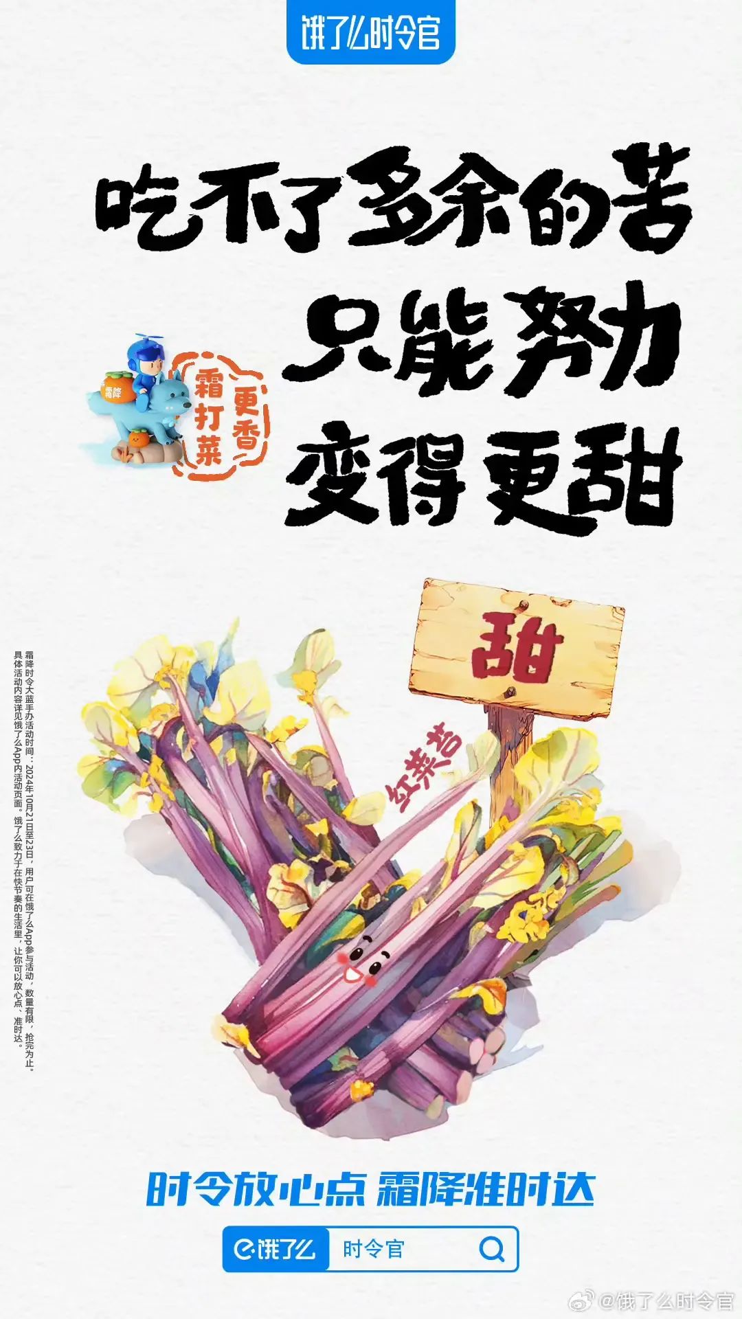 不得不说,饿了么精心打造的时令官IP,这几组海报的文案还挺好玩。