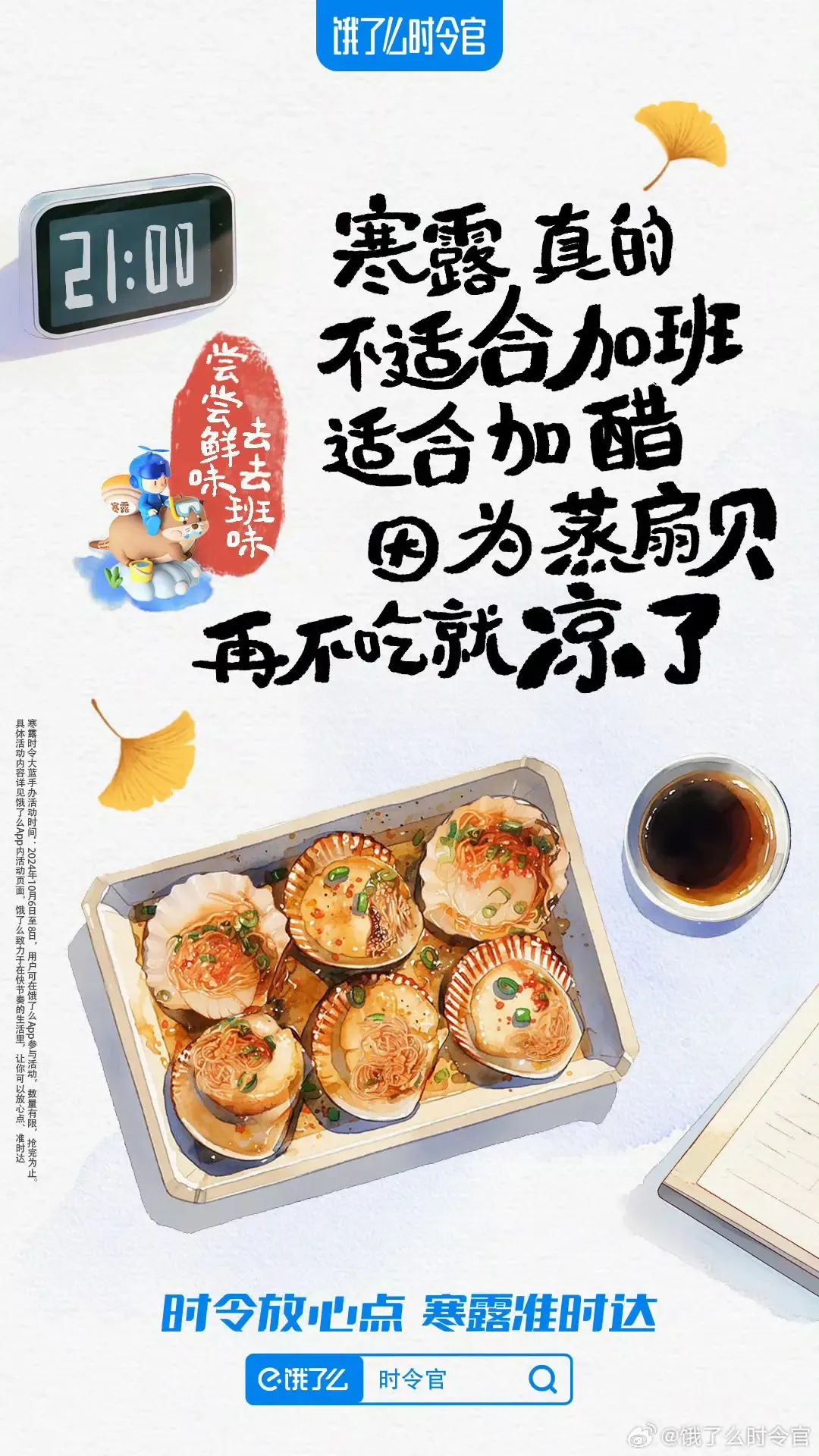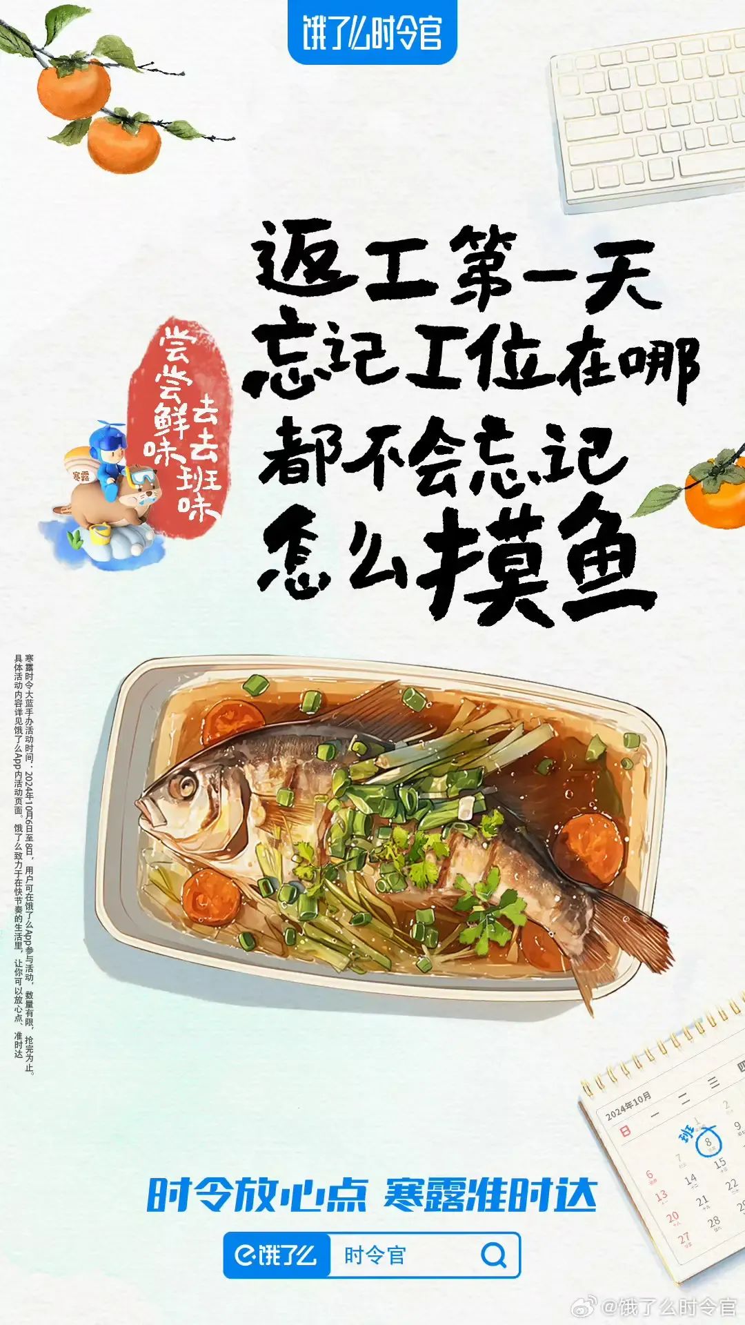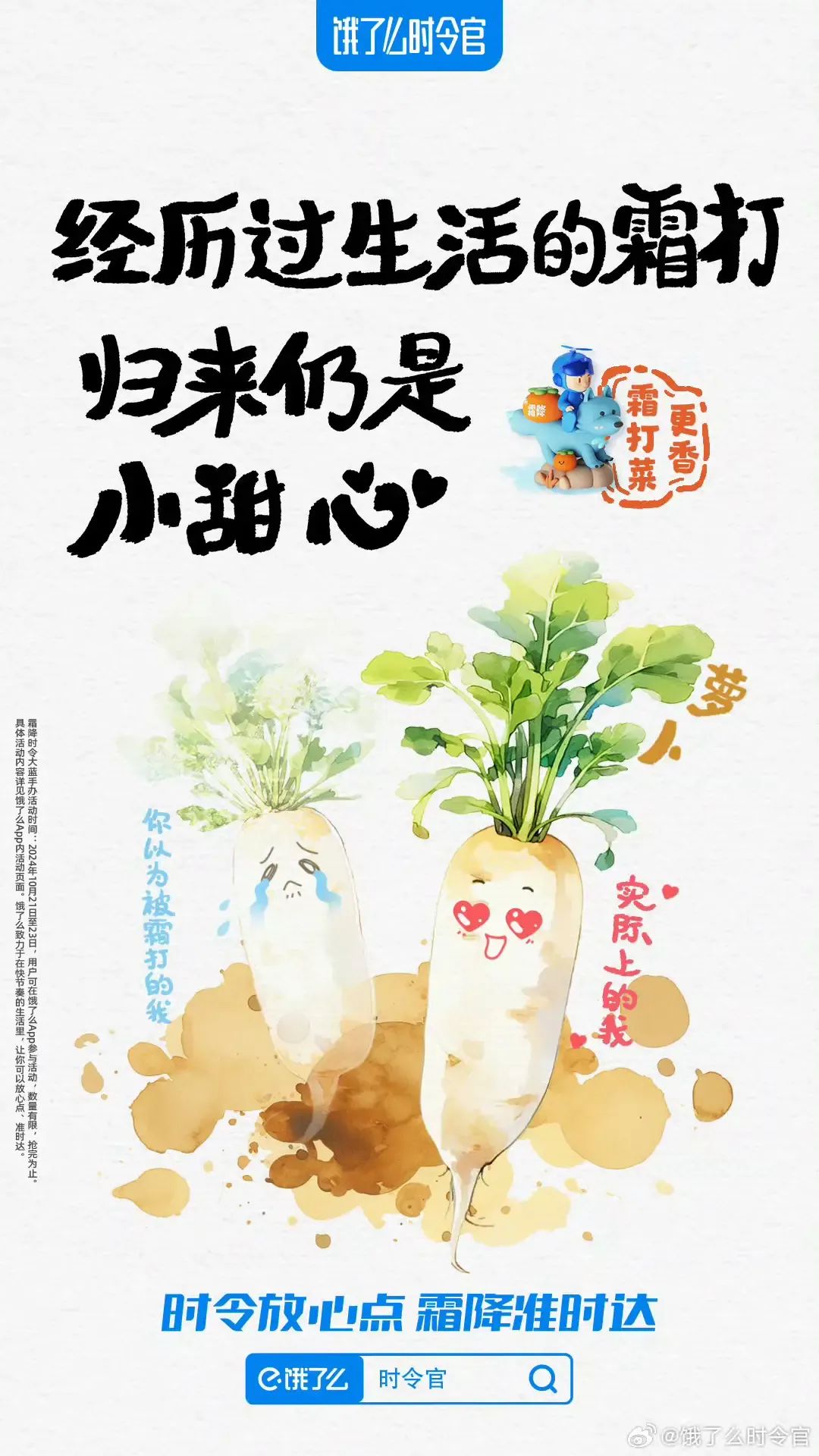 不得不说,饿了么精心打造的时令官IP,这几组海报的文案还挺好玩。