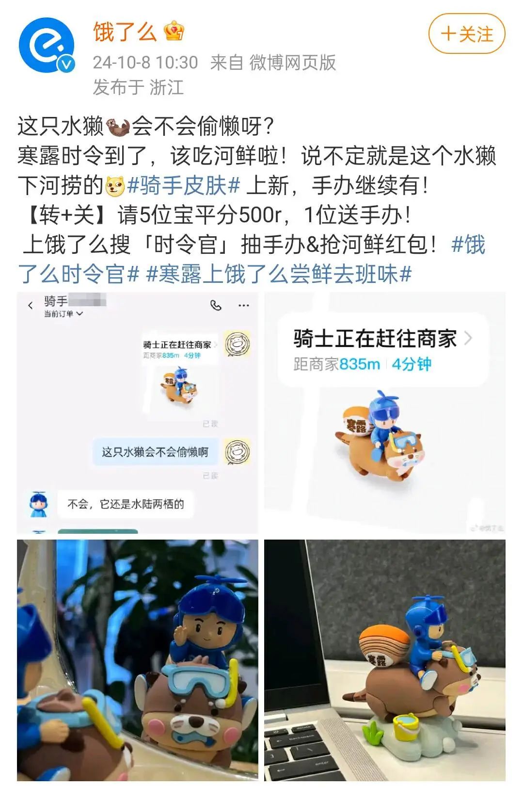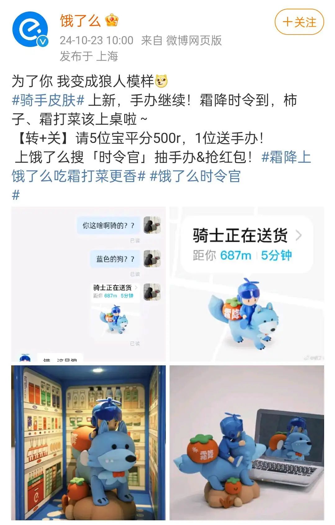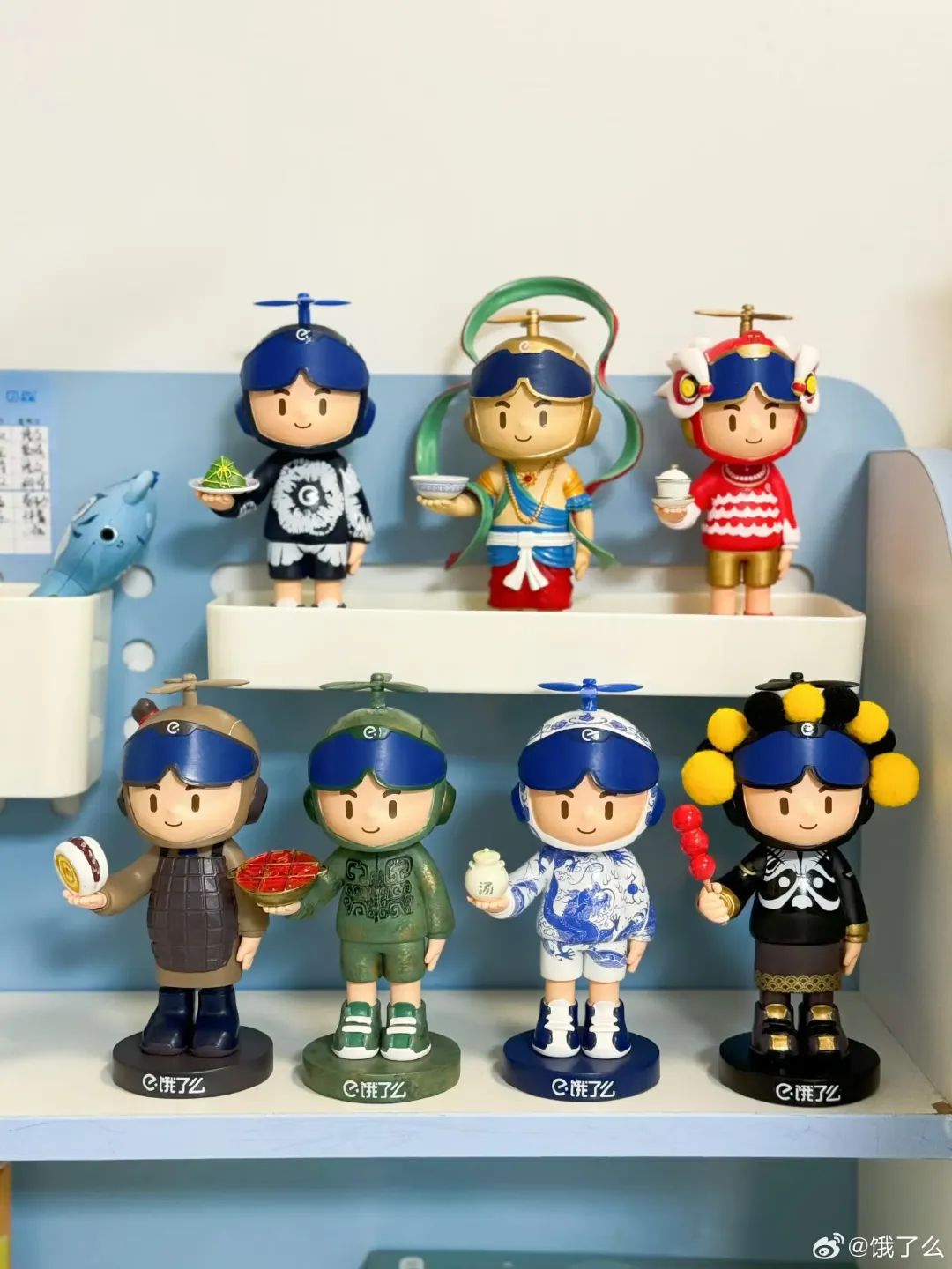 除了小山鸡,小狼,小水獭,小浣熊这些可爱“坐骑”,饿了么还给骑士“大蓝”出了七款带有地域特色的周边摆件!