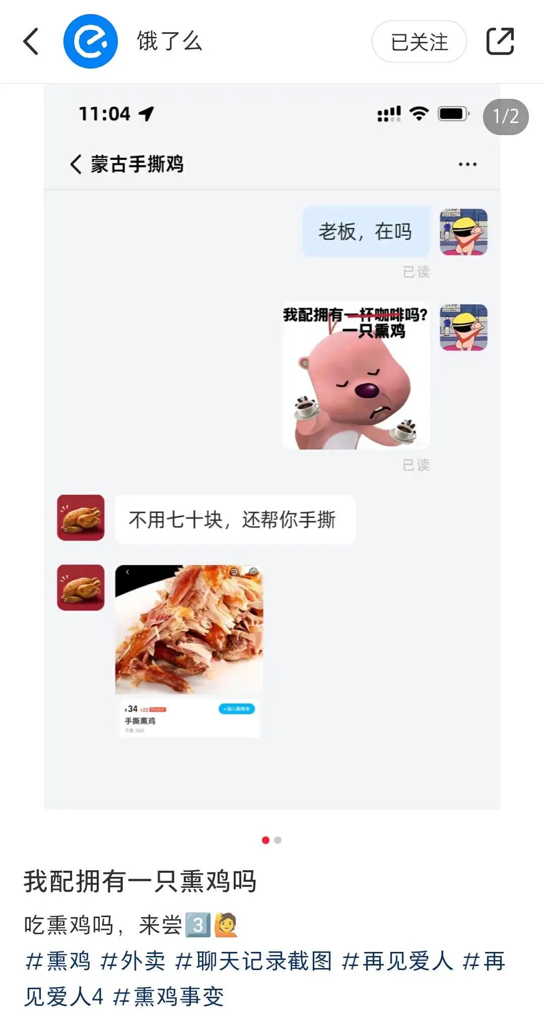 除了70块一只的熏鸡,还有匿名网友的抽象评价↓饿了么也是学会举one反three了!!