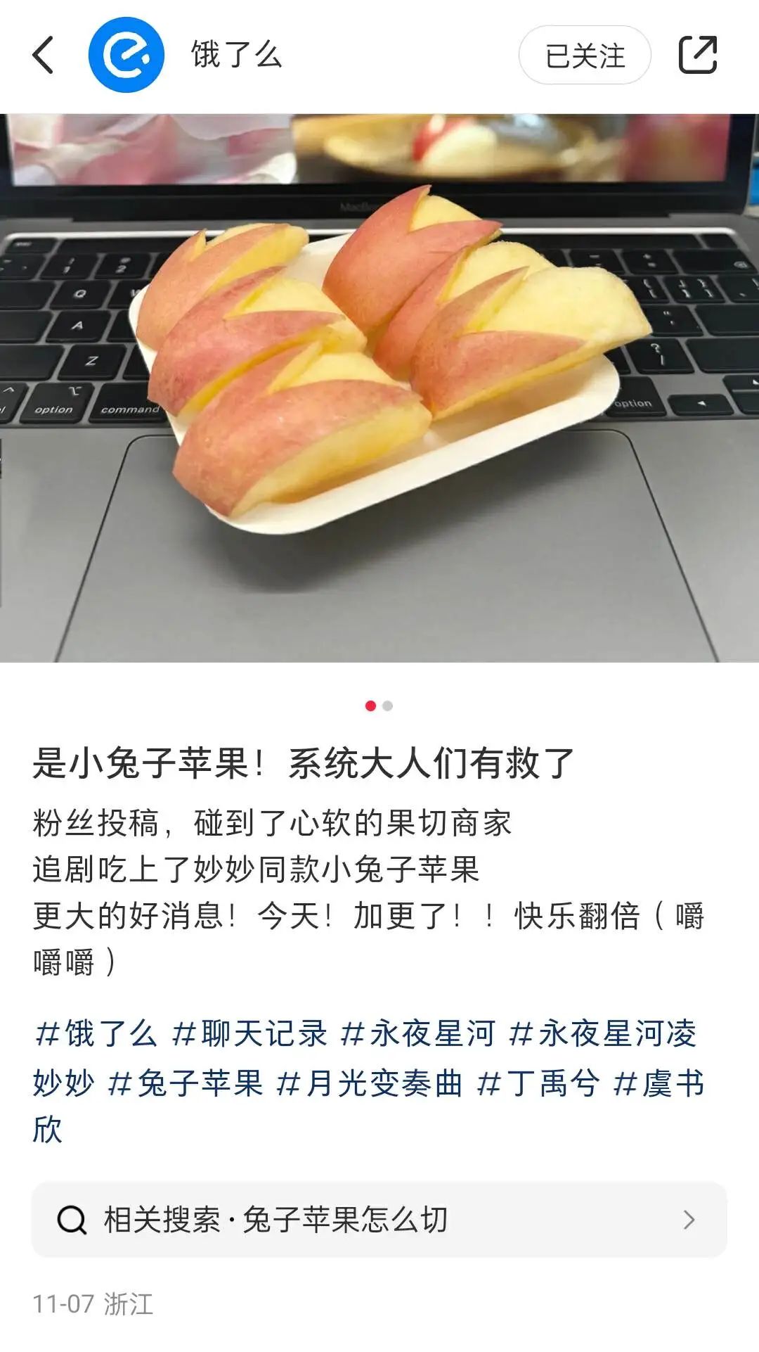 虞书欣、丁禹兮联袂主演的《永夜星河》正在热播中,凌妙妙的小兔子苹果意外出圈,饿了么晒出了粉丝投稿的同款!