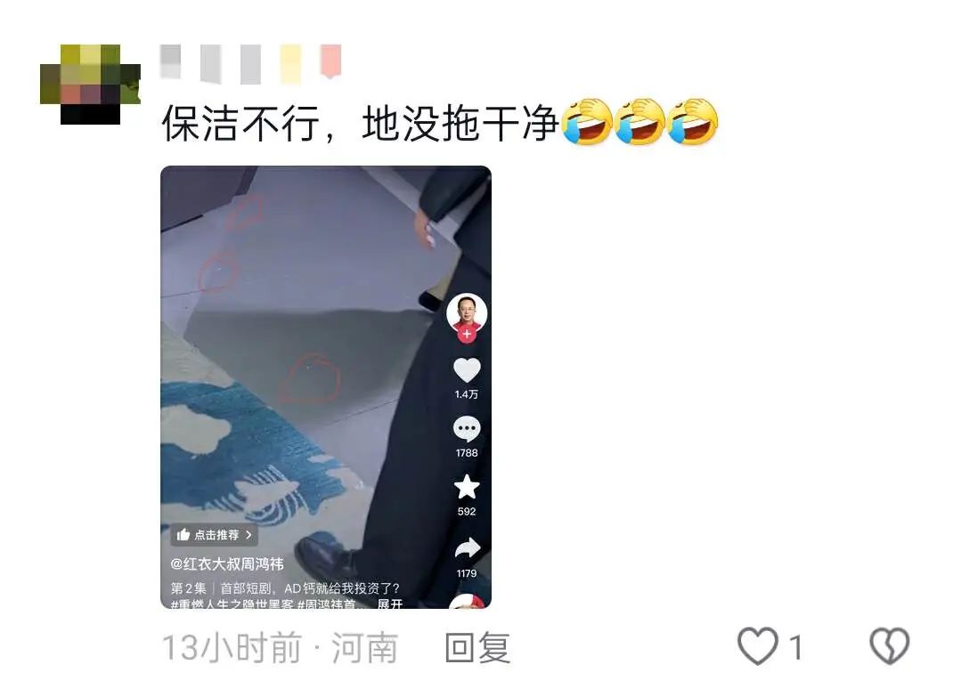 评论区还有“列文虎克”发现保洁地没拖干净?