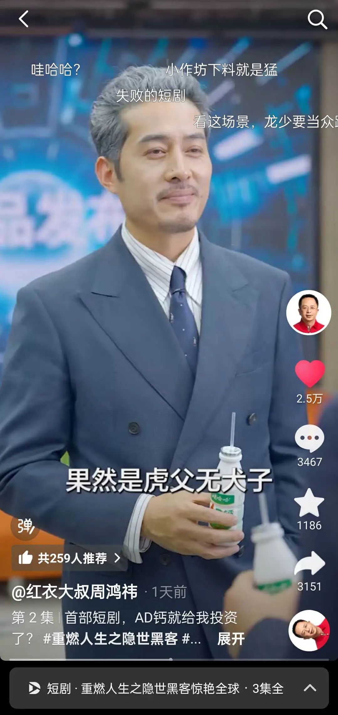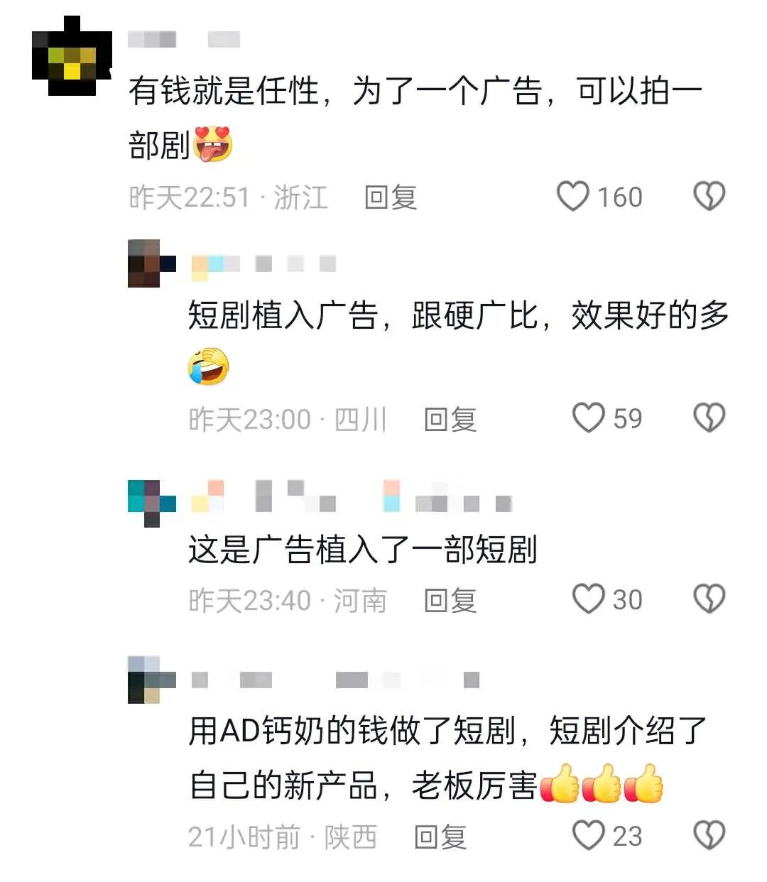 网友表示,用AD钙的钱做了短剧,短剧介绍了自己的新产品,周老板你是这个