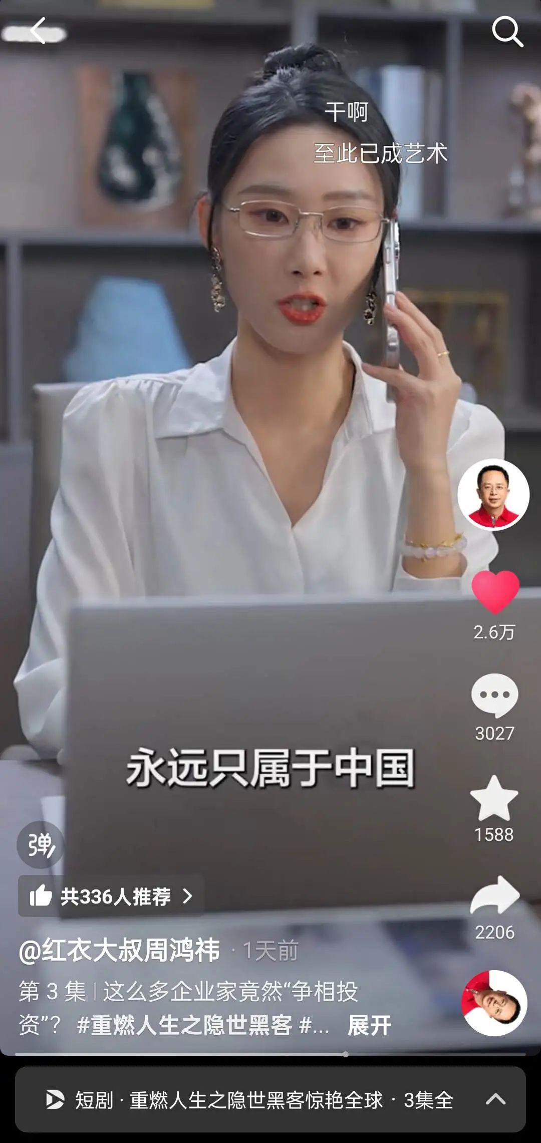 近日,360公司创始人周鸿祎出演的首部短剧作品—《重燃人生之隐世黑客惊艳全球》正式上线。这不仅是他的短剧处女作,也是一次全新的尝试。