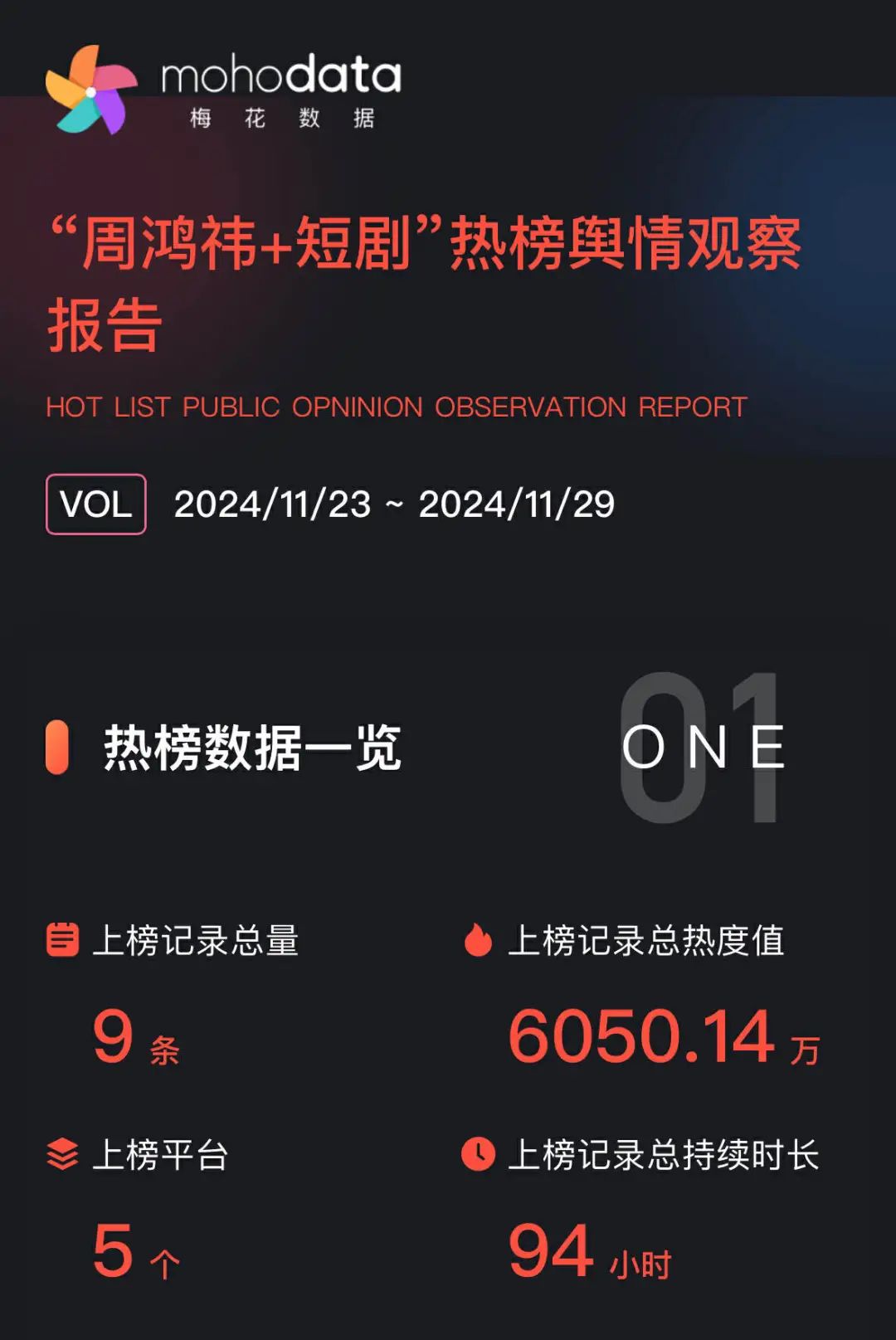 根据梅花数据热榜的观察,短剧自上线以来,便迅速引起了网友的广泛关注和热议。该剧的热搜热度累计达到了6050.14万,共上榜9次,覆盖了5家平台,总持续时间长达94小时。