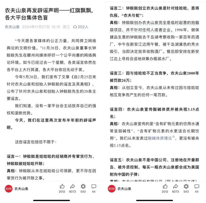 虽然,钟睒睒儿子美国籍这个事,依旧是个硬伤,但农夫山泉确实通过这波“钟睒睒喊话张一鸣”,收割了一波流量,来为自己辟谣。