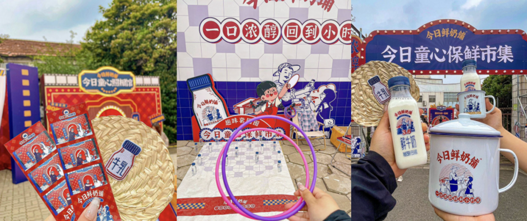 除了国潮外,在共鸣、支持年轻群体上,今日鲜奶铺也一直在行动。“重新养一遍自己”的热潮在互联网上风靡,今日鲜奶铺也紧跟用户需求,在今年六一儿童节期间在多个城市开展“童心保鲜市集”,设置童心零食铺、照相馆、大篷车等怀旧设施,让“大朋友”们一秒回到童年。在“打工人”越来越离不开咖啡的年代,今日鲜奶铺更是瞅准趋势,以咖啡场景为抓手,推出#神仙奶咖CP,抢占奶咖市场……