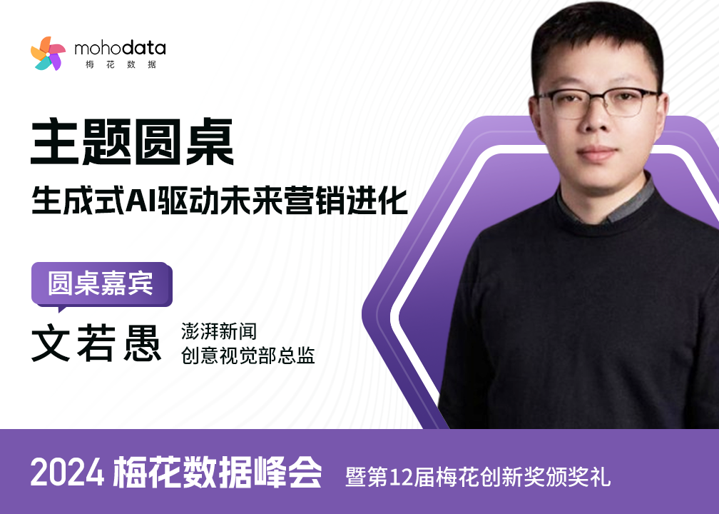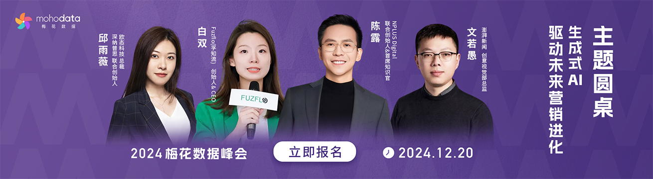 处在由人工智能引领的历史变革拐点,如何顺势而为,将 AI 技术应用到创新实践,为企业提升未来竞争力?我们邀请到 NPLUS Digital 联合创始人&首席知识官陈露、澎湃新闻创意视觉部总监文若愚、孚知流创始人&CEO白双、深纳普思联合创始人 & 欧态科技总裁邱雨薇,四位深耕AI+领域的行业先行者,从产品策略、技术本质、行业洞察、服务创新等多维视角出发,共同解读以生成式 AI 为代表的新质生产力正在如何推动行业发展,并在现场分享他们的前沿实践成果,与观众共同见证未来营销的趋势与机遇。