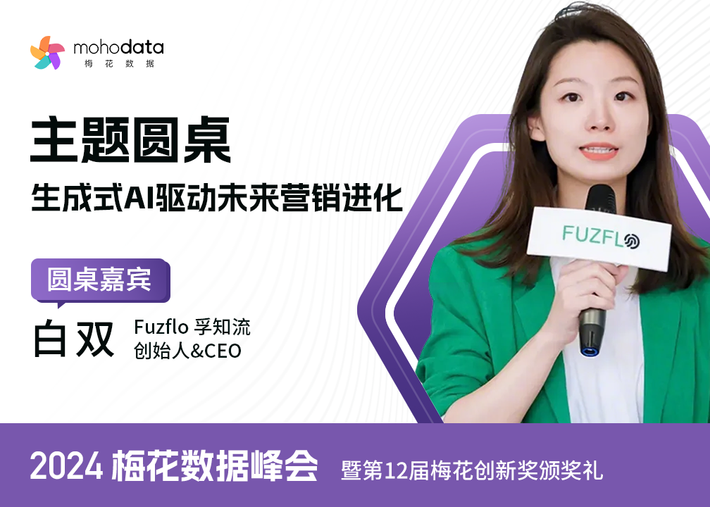 白双,Fuzflo(孚知流) 创始人&CEO。白双是一位人工智能领域的连续创业者,带领团队先后推出了两款企业级 AI 应用产品 Translai 和孚知流(Fuzflo),于2022年上榜胡润U30创业先锋榜。作为AI产品经理,她将大语言模型(LLMs)和语言科学、媒介科学创新融合,结合智能体框架提炼了一套独有的企业级智能体产品方法论,旨在采用符合第一性原理的方式,科学地加速人工智能在企业中的落地。