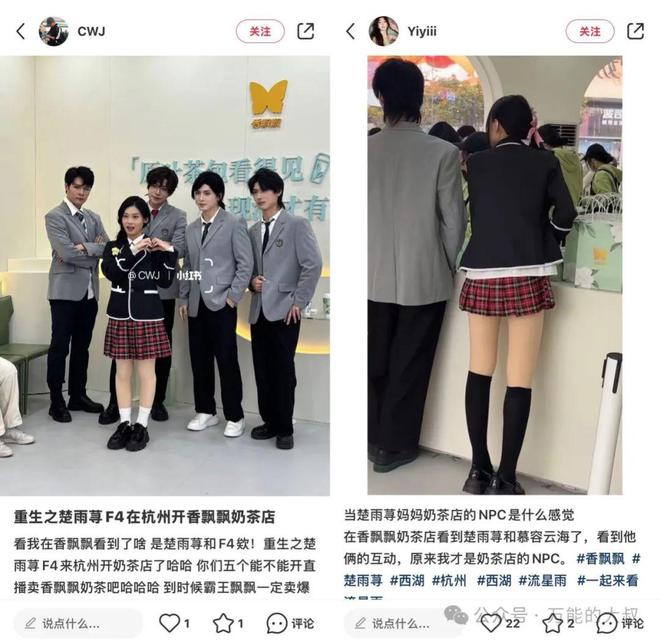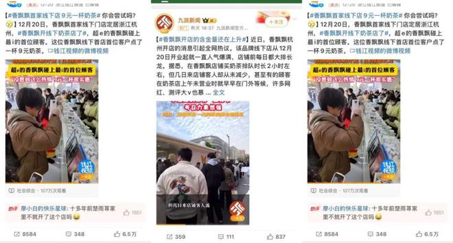 香飘飘奶茶店,不仅上了微博热搜、抖音和小红书热门,更是成为一个打卡地。
