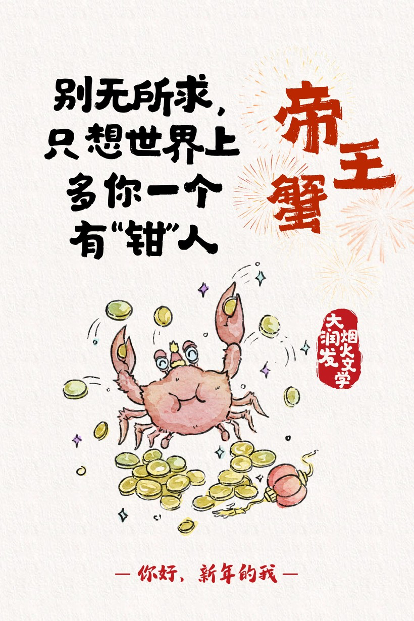 帝王蟹、有机深水老黄鱼、草莓蛋糕、鲜花等等超市产品们都来给大家送上新年寄语。拼搏了一年的各位,快和新一年的自己说声好,放松放松一起过个年吧~