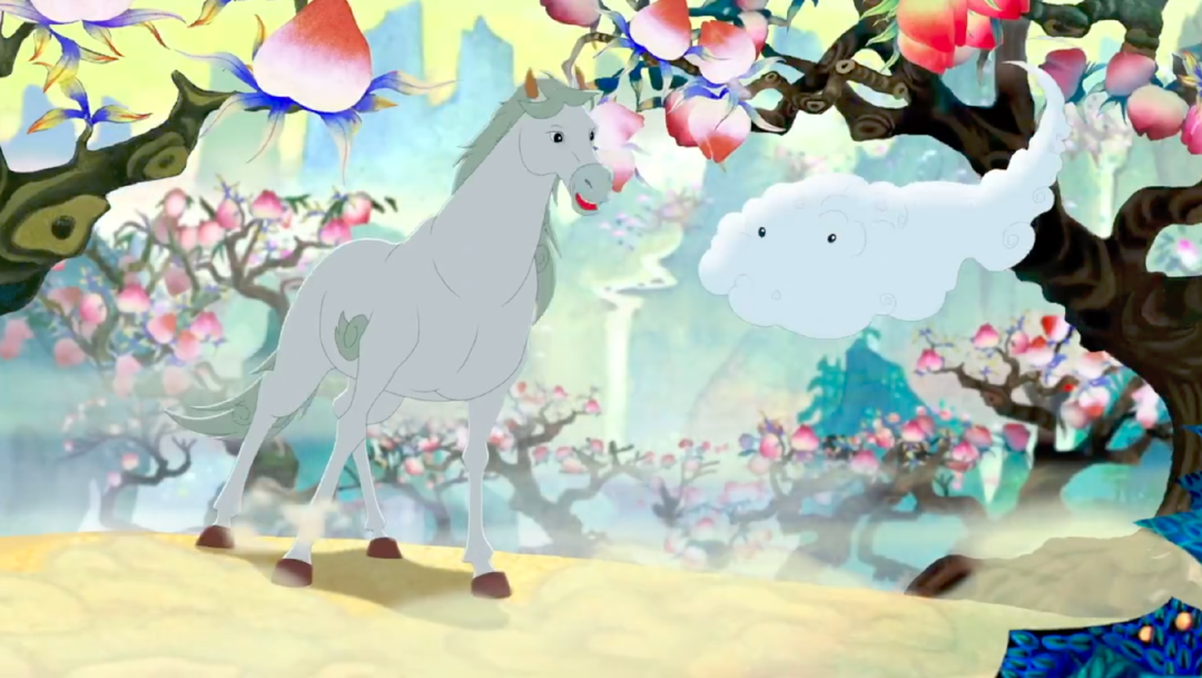 片中,大师兄与二熊弟上演了一场精彩的“你追我赶”式变身大戏。从老鹰与小鸟,仙鹤与小鱼,再到一匹“宝马”与一朵云,两个角色之间剑拔弩张的关系慢慢转变为马踏祥云般的吉祥和默契。