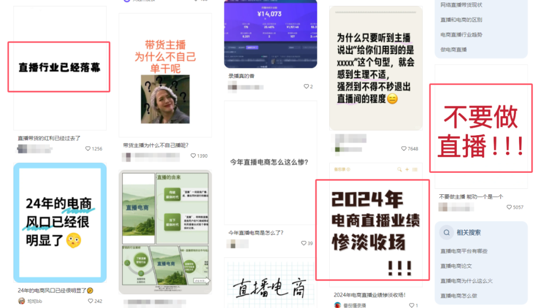 正如2024年的双十一,抢消费券、熬夜“剁手”、在朋友圈晒“剁手”成果的消费者,肉眼可见的变少了。直播电商降温的首要原因,其实就是消费者腻了。内容同质化,同样的话术、互动、套路,看一眼就想划走;产品同质化,每个平台逛一遍,都有不同的主播在推销相同的物品……总之,当全民直播开始的时候,也意味着直播电商供大于求,这是一个行业从风口变成常态甚至倒退的必经过程。