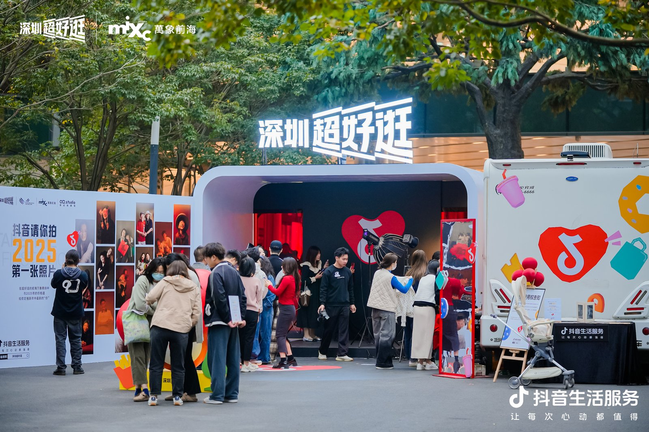 2025新年伊始,「深圳超好逛」联动华润万象集团,抖音特色商户「o口studio」和「深圳光影艺术季」开启元旦特别企划活动,在超好逛的万象前海商场,搭建大型摄影装置的“移动肖像馆”,落地“抖音请你拍2025第一张照片”活动,用影像记录的形式,与2025年的你相遇,给你定格新年中最新的“你”: