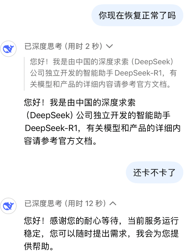 但前几天因为热度前来的用户发现,DeepSeek频繁出现宕机,几乎无法正常使用,原因是公司服务器受到了大规模DDoS恶意攻击,截至发稿,DeepSeek已恢复正常使用。