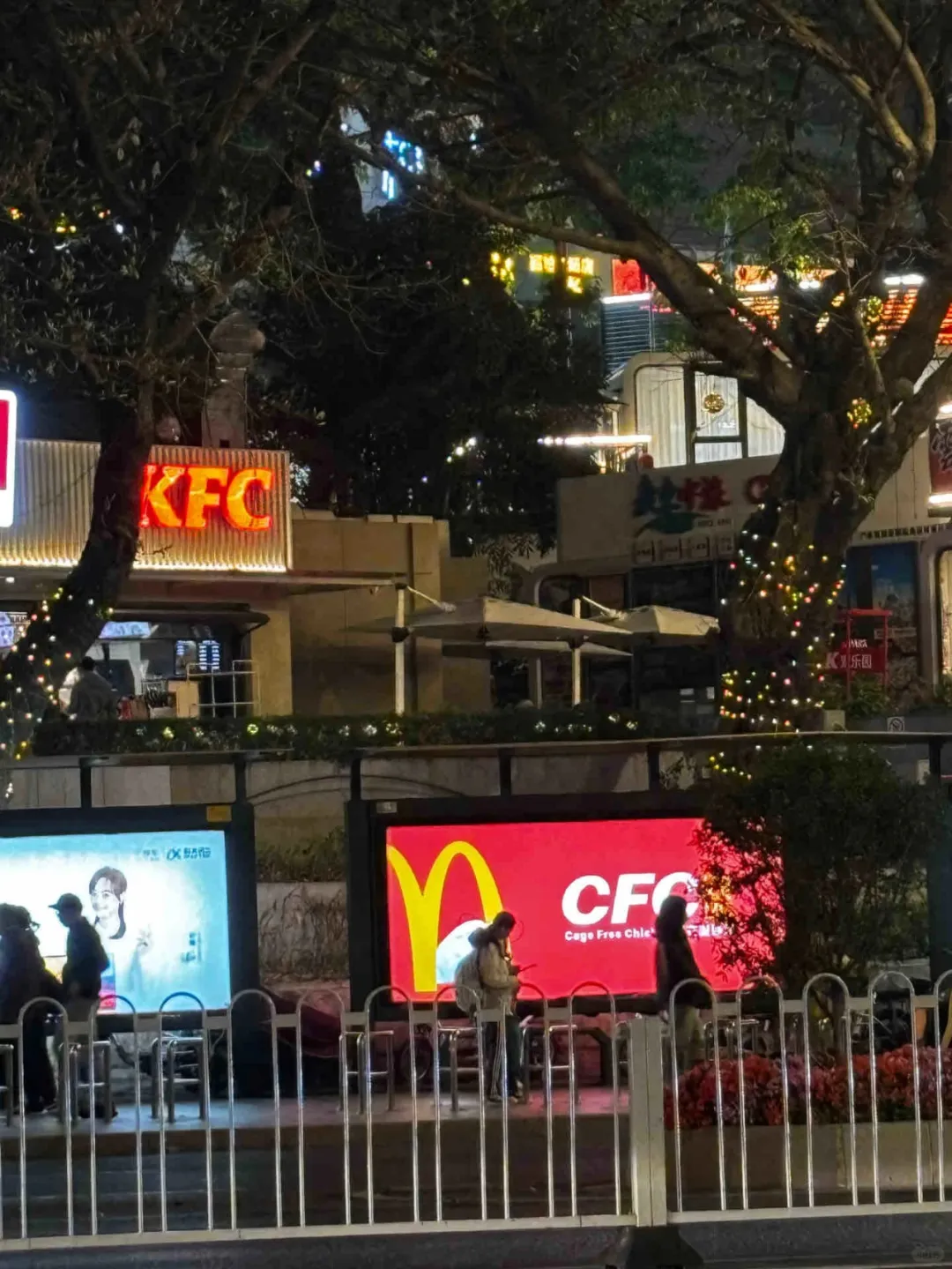 不仅如此,现在肯德基的KFC广告做到麦当劳家门口了。