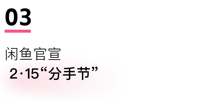 2月14日情人节,有些网友在过完这一天后,会将收到的礼物通过闲鱼再转卖出去。因此,不少网友戏称闲鱼是“情人节礼物回收站”。于是,闲鱼索性官宣2月15日“分手节”,全场5折起,欢迎网友来抄底捡漏。