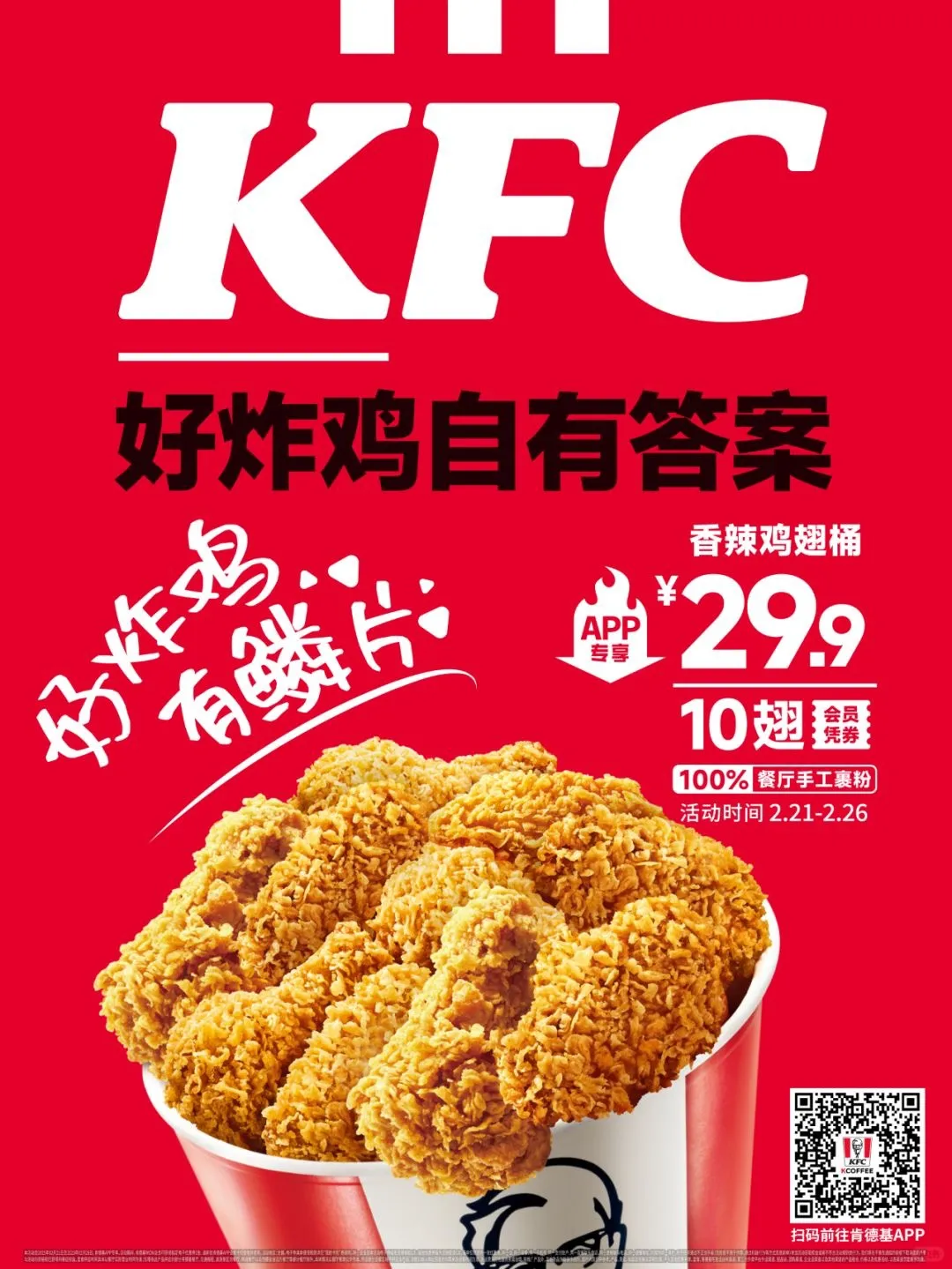 除了在海报中突出字母K,献上特惠产品,肯德基还虾仁猪心地提到了“炸鸡鳞片”。