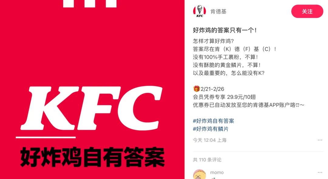 几天后,肯德基官方小红书账号也发布了一条帖子,疑似是对这波碰瓷的反击。