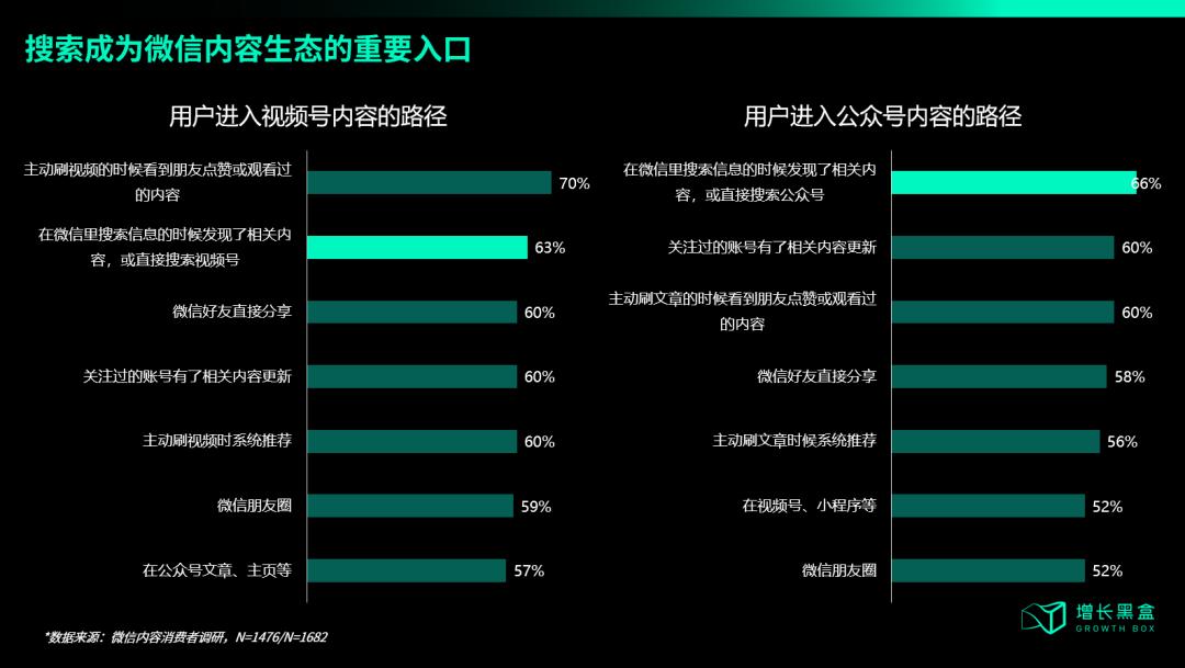 首先看短期。我们在2024年Q3的用户调研显示:微信搜索是公众号内容的TOP1入口,同时也是视频号内容的TOP2入口。同时,用户的收入阶层越高、消费能力越强,通过搜索进入公众号内容的占比就越高。